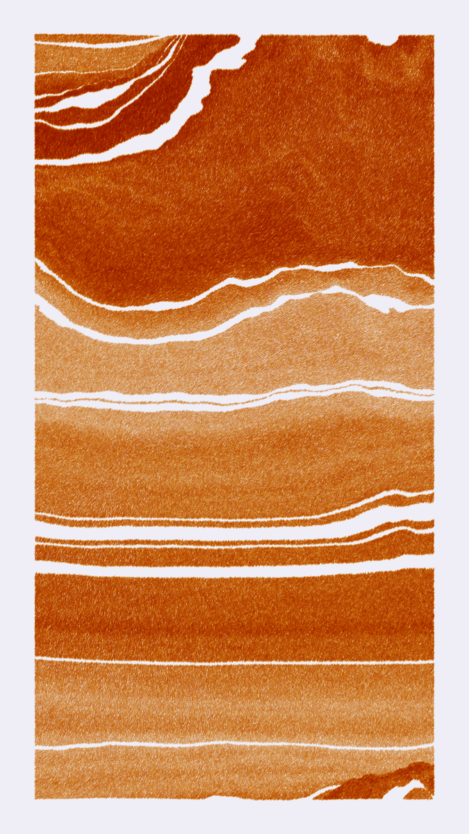 Stratified landforms constructed from many small strokes of colour. The hash of each token describes a coordinate within a multidimensional generative space, locating a unique composition that lies along one of many possible longitudes.