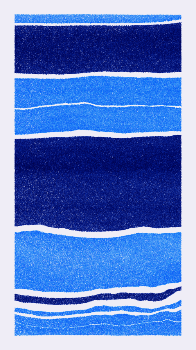 Stratified landforms constructed from many small strokes of colour. The hash of each token describes a coordinate within a multidimensional generative space, locating a unique composition that lies along one of many possible longitudes.