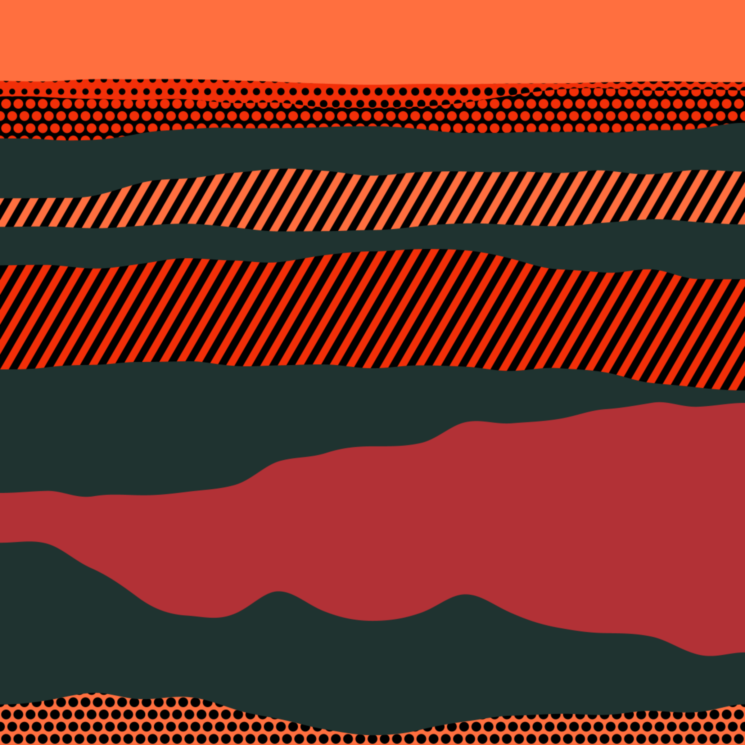 An ode to Roy Lichtenstein, incorporating his iconic version of Ben-Day dots, halftone dots, angled stripes, and solid color patches. Inspired by Roy's sea and landscape paintings, each artwork generates a unique combination of patterns, shapes, and colors.