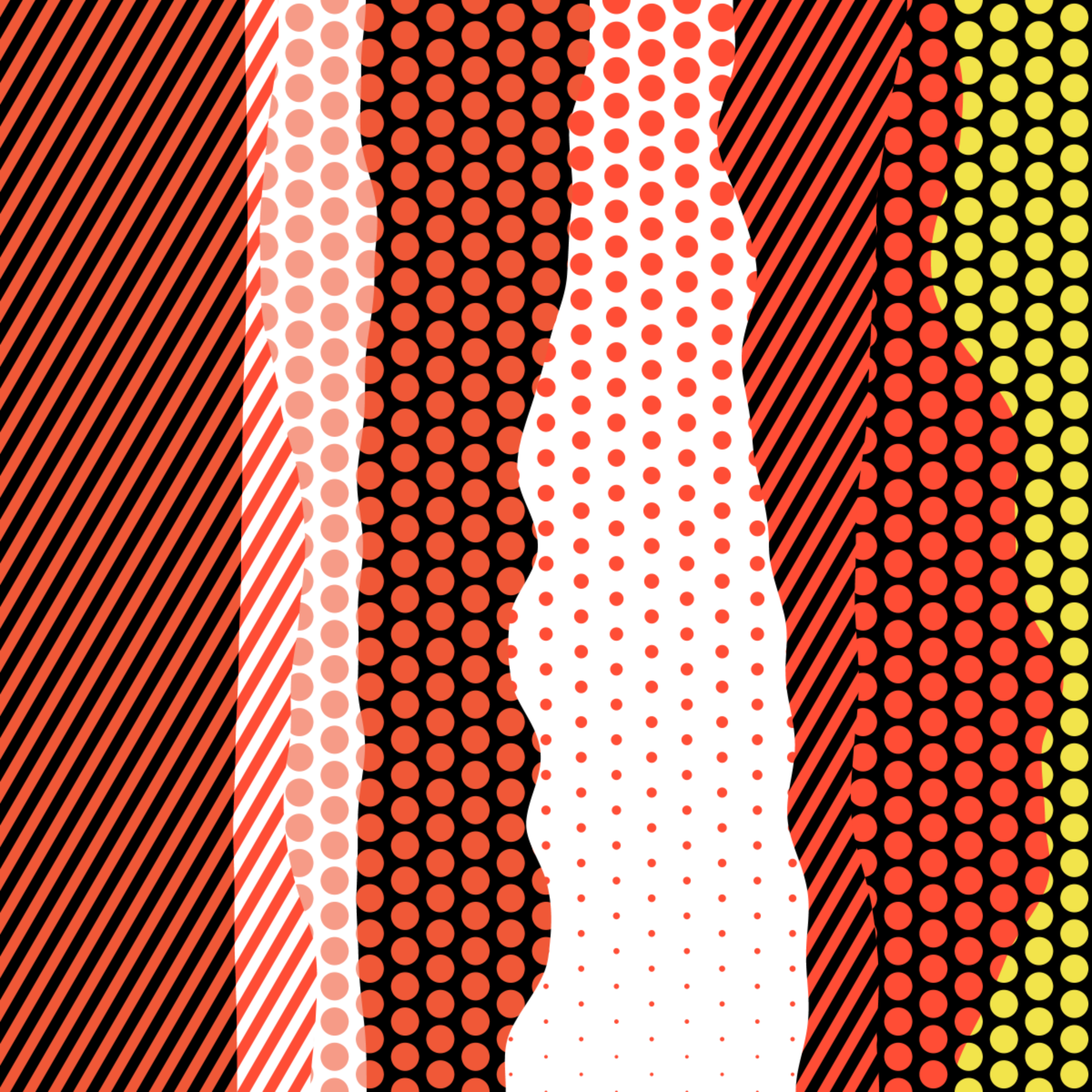 An ode to Roy Lichtenstein, incorporating his iconic version of Ben-Day dots, halftone dots, angled stripes, and solid color patches. Inspired by Roy's sea and landscape paintings, each artwork generates a unique combination of patterns, shapes, and colors.