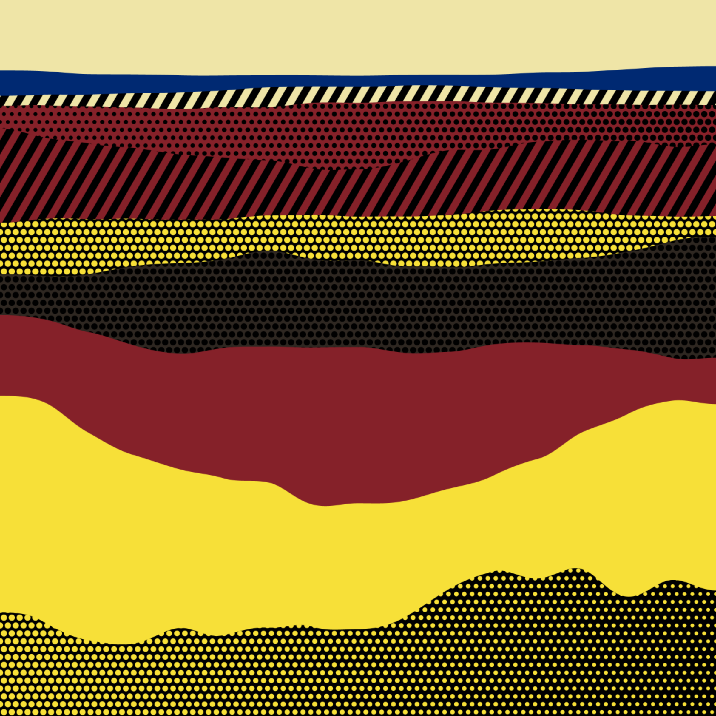 An ode to Roy Lichtenstein, incorporating his iconic version of Ben-Day dots, halftone dots, angled stripes, and solid color patches. Inspired by Roy's sea and landscape paintings, each artwork generates a unique combination of patterns, shapes, and colors.