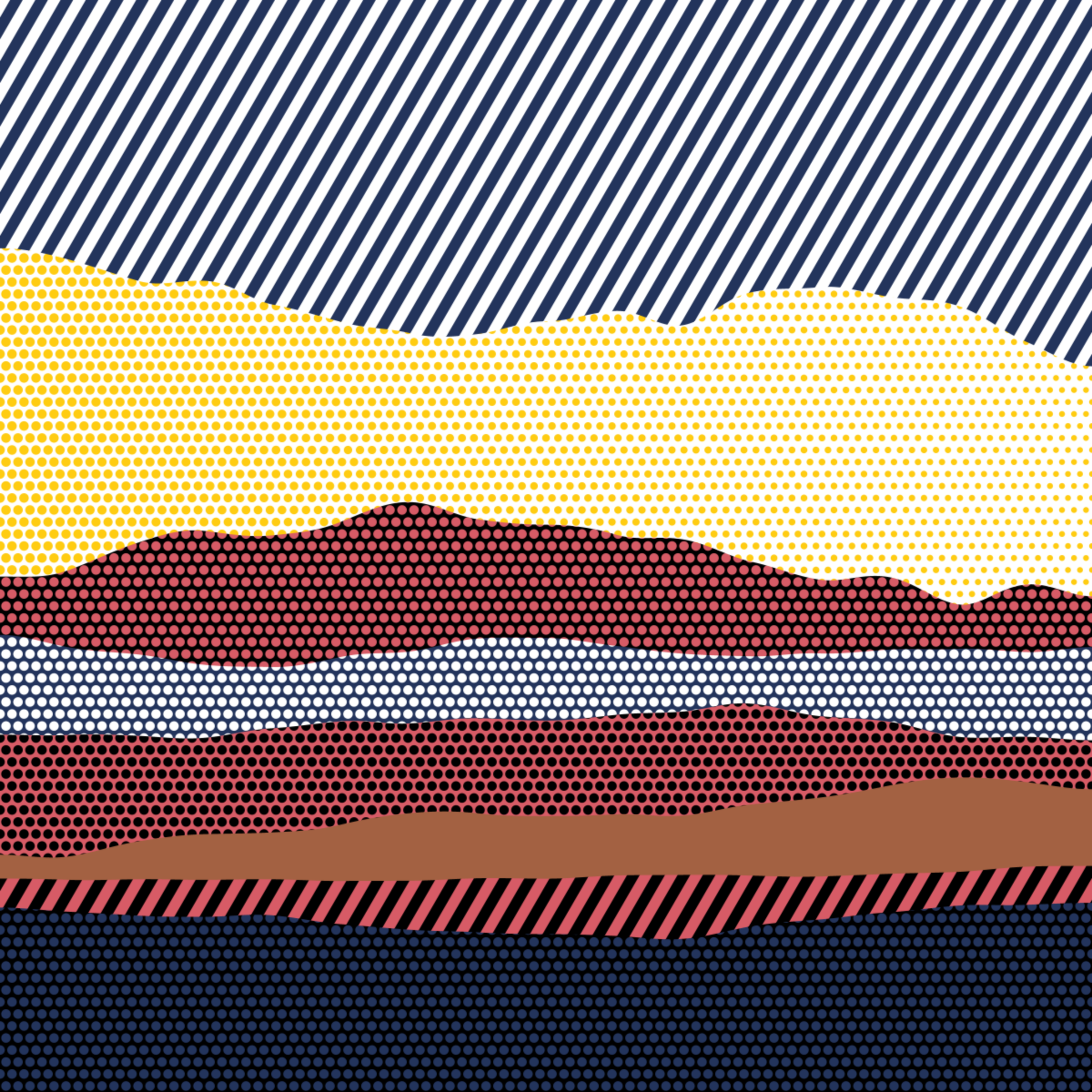 An ode to Roy Lichtenstein, incorporating his iconic version of Ben-Day dots, halftone dots, angled stripes, and solid color patches. Inspired by Roy's sea and landscape paintings, each artwork generates a unique combination of patterns, shapes, and colors.