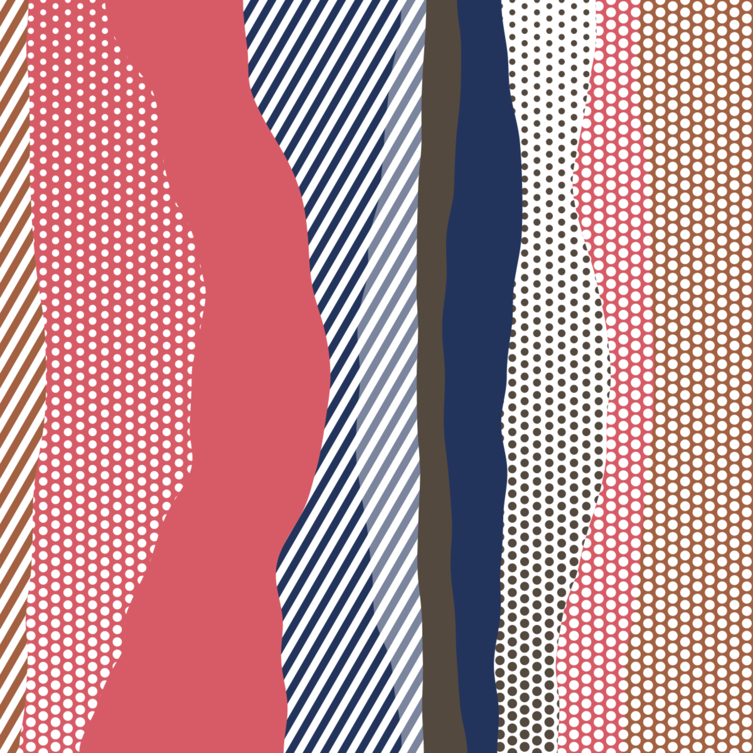 An ode to Roy Lichtenstein, incorporating his iconic version of Ben-Day dots, halftone dots, angled stripes, and solid color patches. Inspired by Roy's sea and landscape paintings, each artwork generates a unique combination of patterns, shapes, and colors.