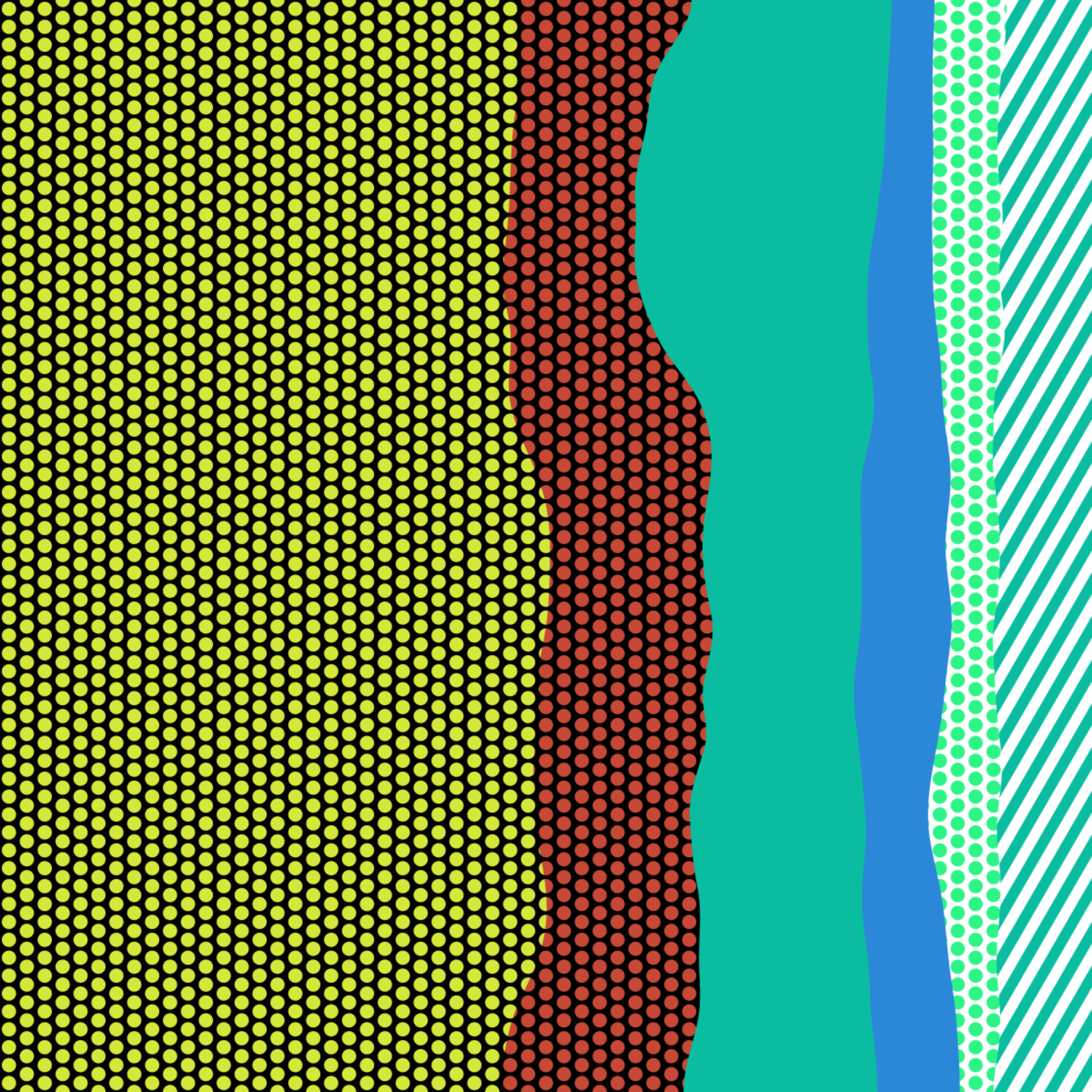 An ode to Roy Lichtenstein, incorporating his iconic version of Ben-Day dots, halftone dots, angled stripes, and solid color patches. Inspired by Roy's sea and landscape paintings, each artwork generates a unique combination of patterns, shapes, and colors.