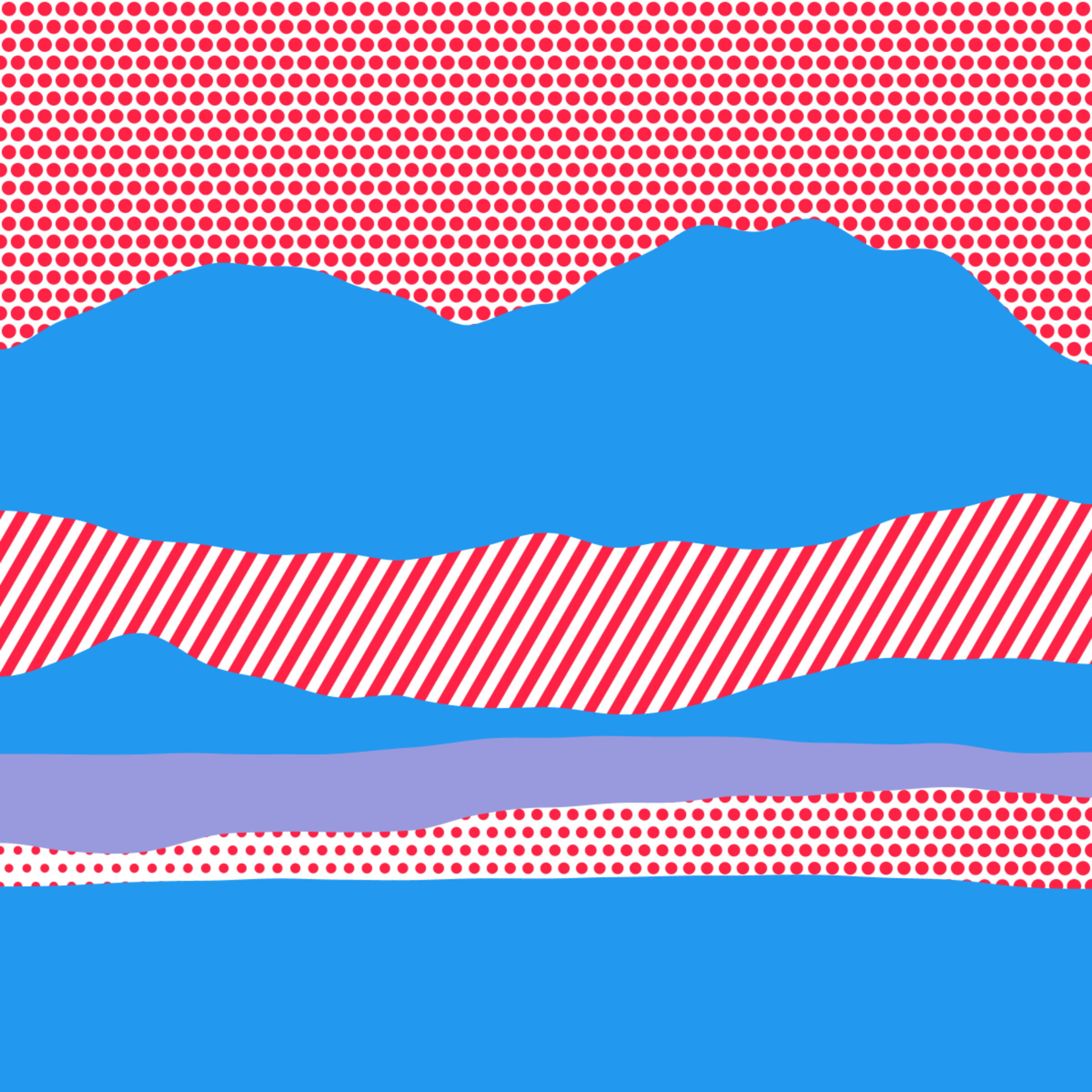 An ode to Roy Lichtenstein, incorporating his iconic version of Ben-Day dots, halftone dots, angled stripes, and solid color patches. Inspired by Roy's sea and landscape paintings, each artwork generates a unique combination of patterns, shapes, and colors.