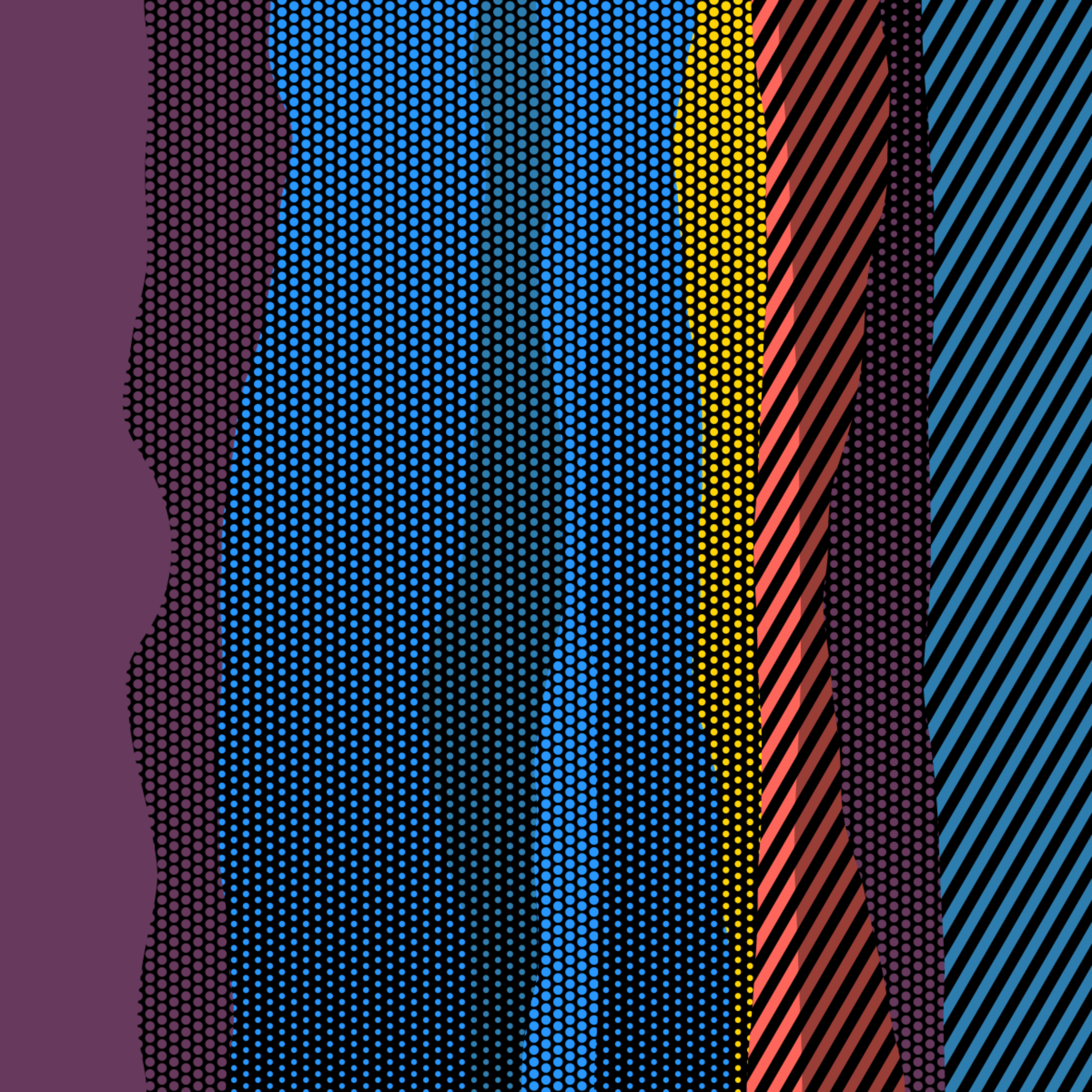 An ode to Roy Lichtenstein, incorporating his iconic version of Ben-Day dots, halftone dots, angled stripes, and solid color patches. Inspired by Roy's sea and landscape paintings, each artwork generates a unique combination of patterns, shapes, and colors.