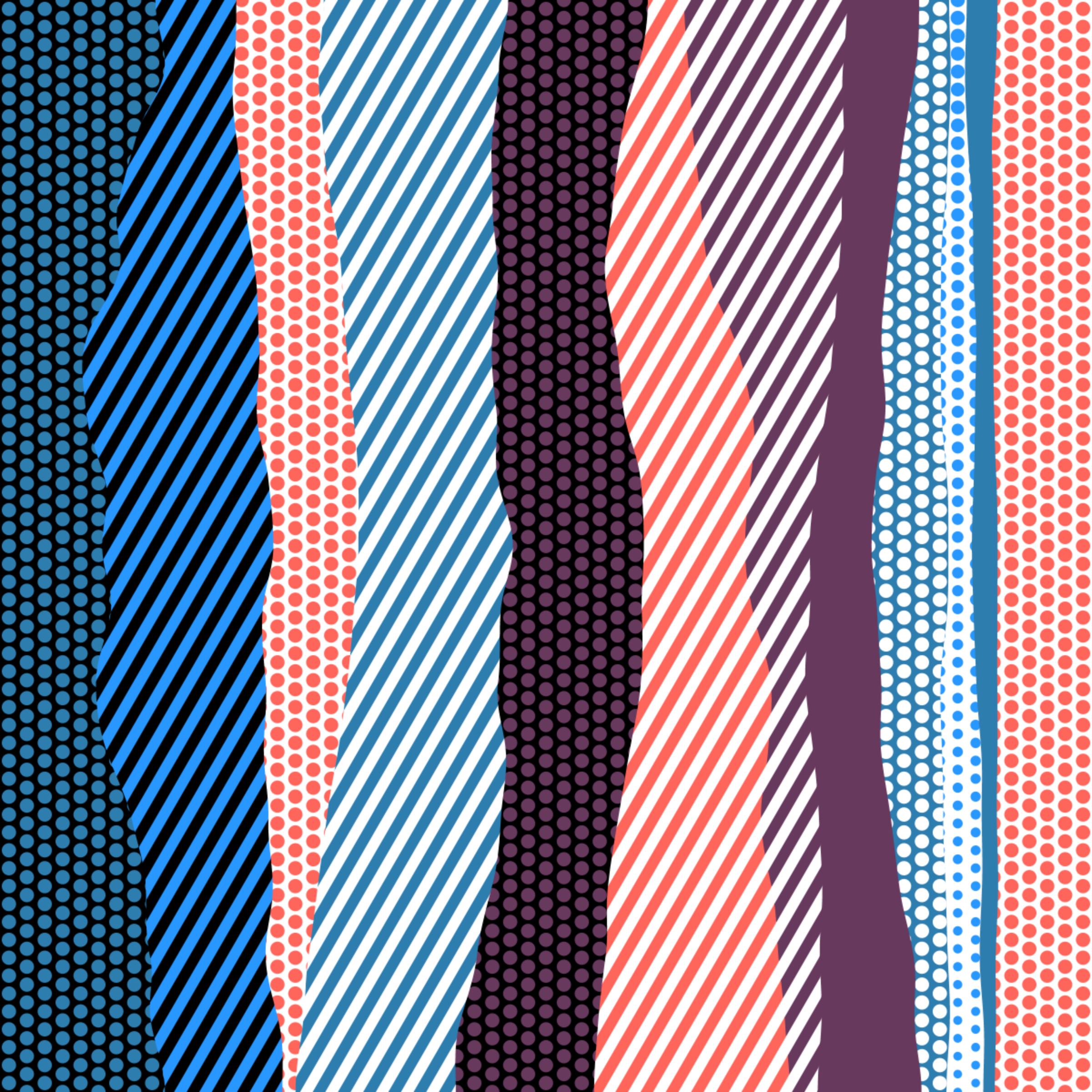 An ode to Roy Lichtenstein, incorporating his iconic version of Ben-Day dots, halftone dots, angled stripes, and solid color patches. Inspired by Roy's sea and landscape paintings, each artwork generates a unique combination of patterns, shapes, and colors.