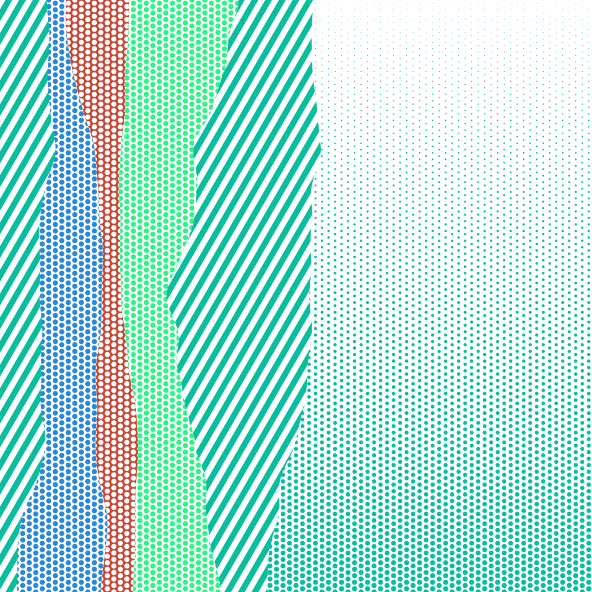 An ode to Roy Lichtenstein, incorporating his iconic version of Ben-Day dots, halftone dots, angled stripes, and solid color patches. Inspired by Roy's sea and landscape paintings, each artwork generates a unique combination of patterns, shapes, and colors.