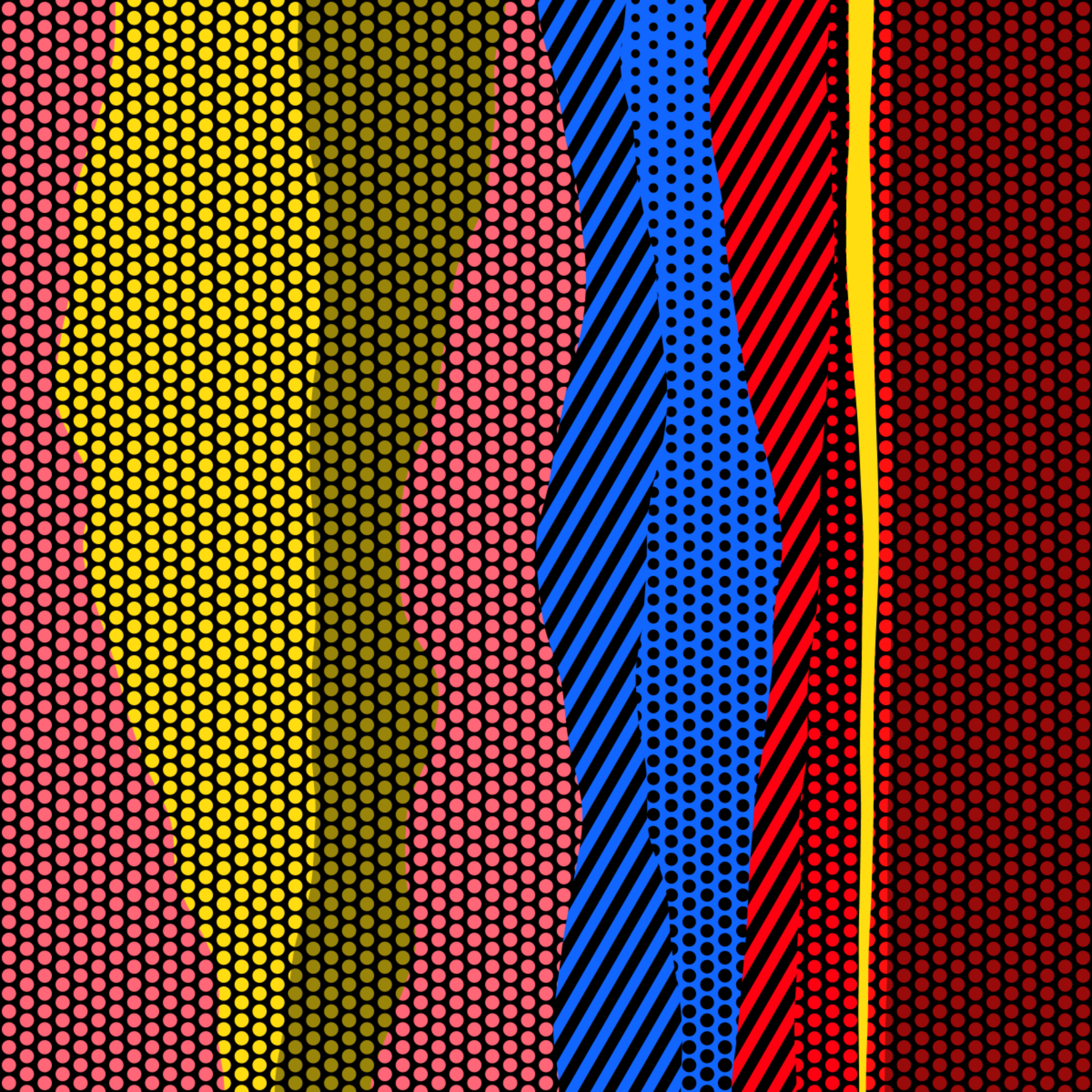 An ode to Roy Lichtenstein, incorporating his iconic version of Ben-Day dots, halftone dots, angled stripes, and solid color patches. Inspired by Roy's sea and landscape paintings, each artwork generates a unique combination of patterns, shapes, and colors.