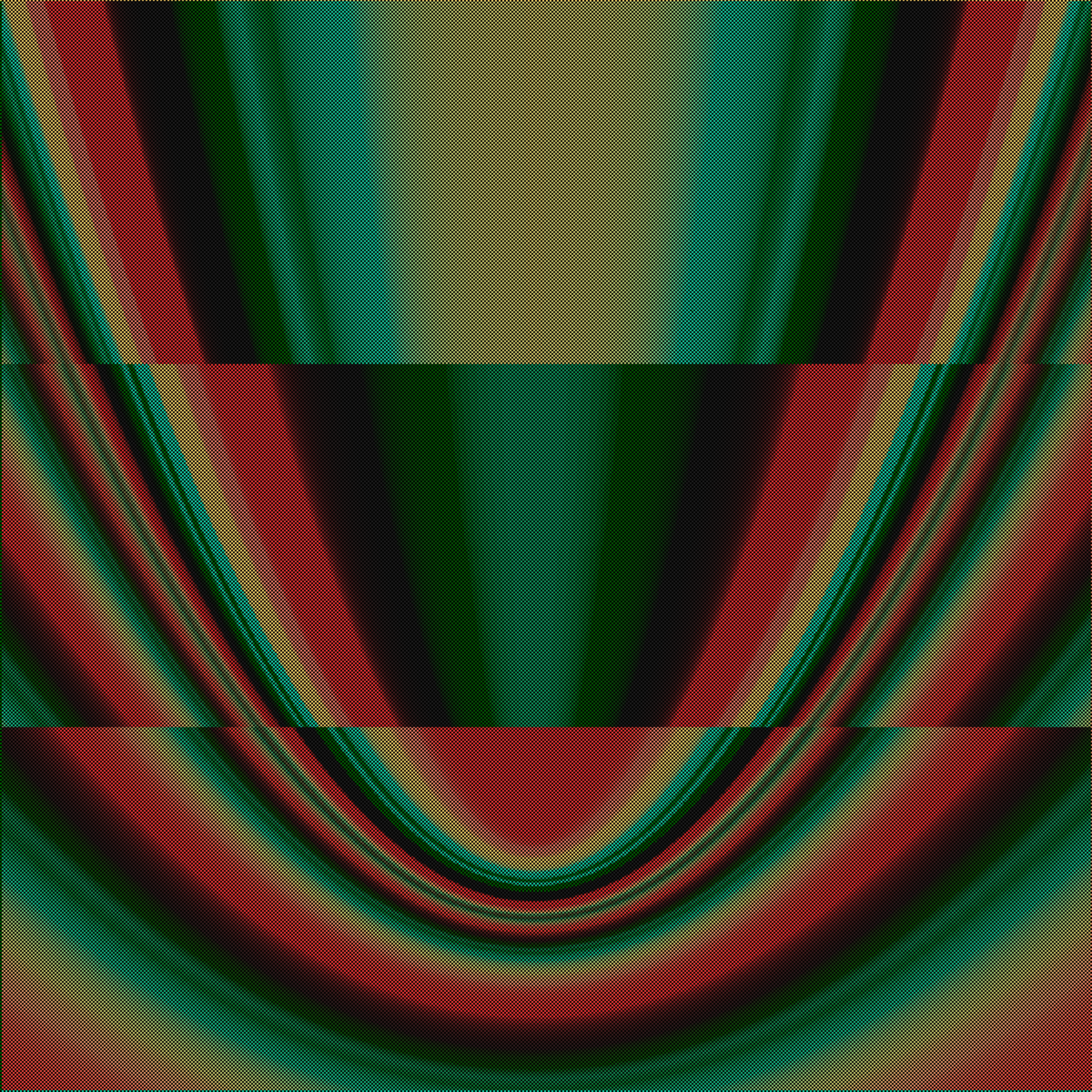 This project is a visual representation of realities that are out of phase. Interference patterns, colorful echoes, and emerging secrets are explored. Mathematical functions produce constant motion, but rarely, a peaceful scene resolves within the chaos. Click or press any key to pause. *Photosensitive seizure warning: These artworks contain flashing colors and moving patterns.