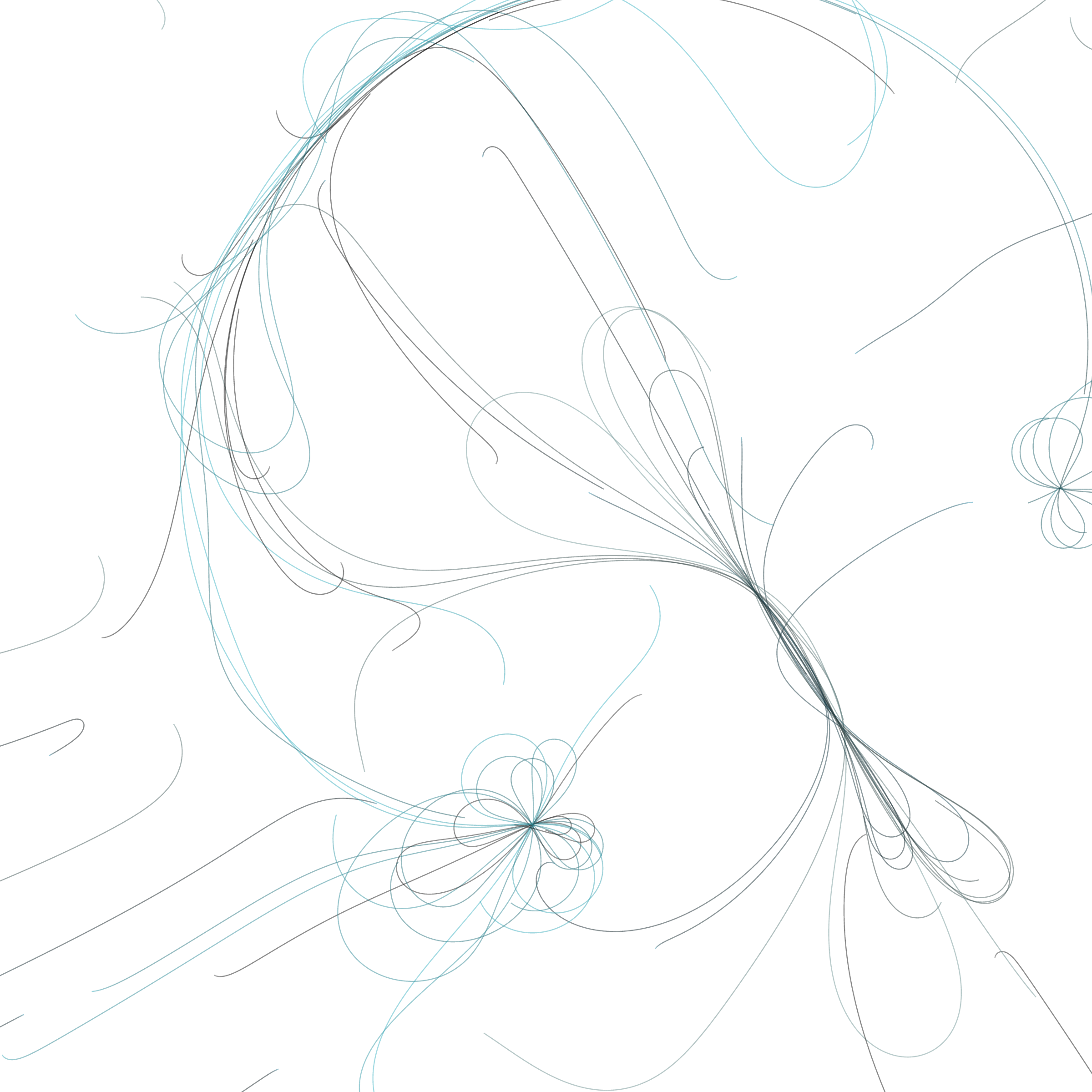 “Phototaxis” is a simulated environment populated by simple machines. After Valentino Braitenberg’s 1984 book “Vehicles,” there are four kinds of machines with different wiring and behaviors: Explorers, Aggressors, Lovers, and Cowards. Each line charts the history of one machine’s movement. The core of this code was the foundation for my MicroImage series of works dating back to 2001. I’ve worked on it in fits and starts since then, and in 2021 it was further developed for Art Blocks. Press ‘P’ to play/pause, ‘B’ for the big bang, ‘1’–’5’ to change the magnification, and ‘L’ to reveal the lights’ locations.