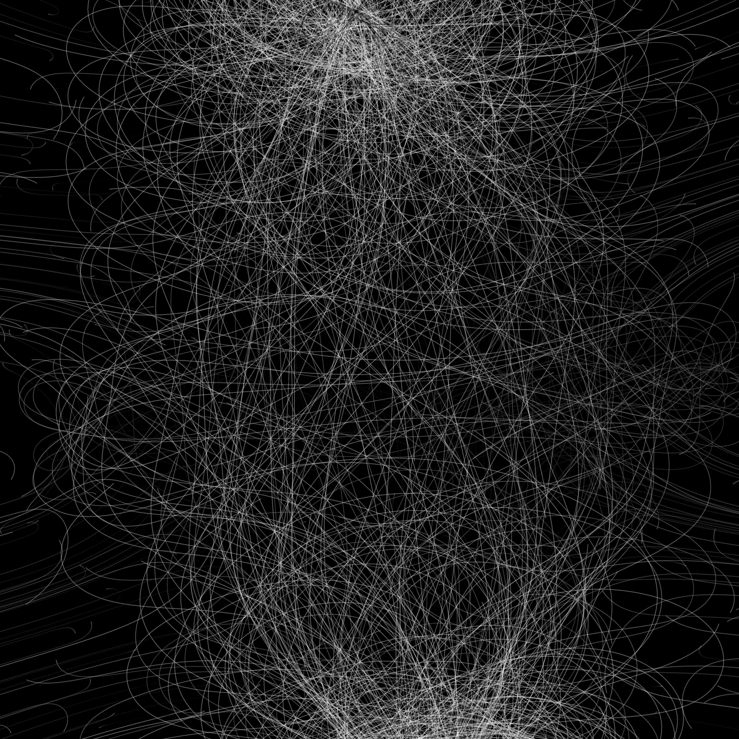 “Phototaxis” is a simulated environment populated by simple machines. After Valentino Braitenberg’s 1984 book “Vehicles,” there are four kinds of machines with different wiring and behaviors: Explorers, Aggressors, Lovers, and Cowards. Each line charts the history of one machine’s movement. The core of this code was the foundation for my MicroImage series of works dating back to 2001. I’ve worked on it in fits and starts since then, and in 2021 it was further developed for Art Blocks. Press ‘P’ to play/pause, ‘B’ for the big bang, ‘1’–’5’ to change the magnification, and ‘L’ to reveal the lights’ locations.