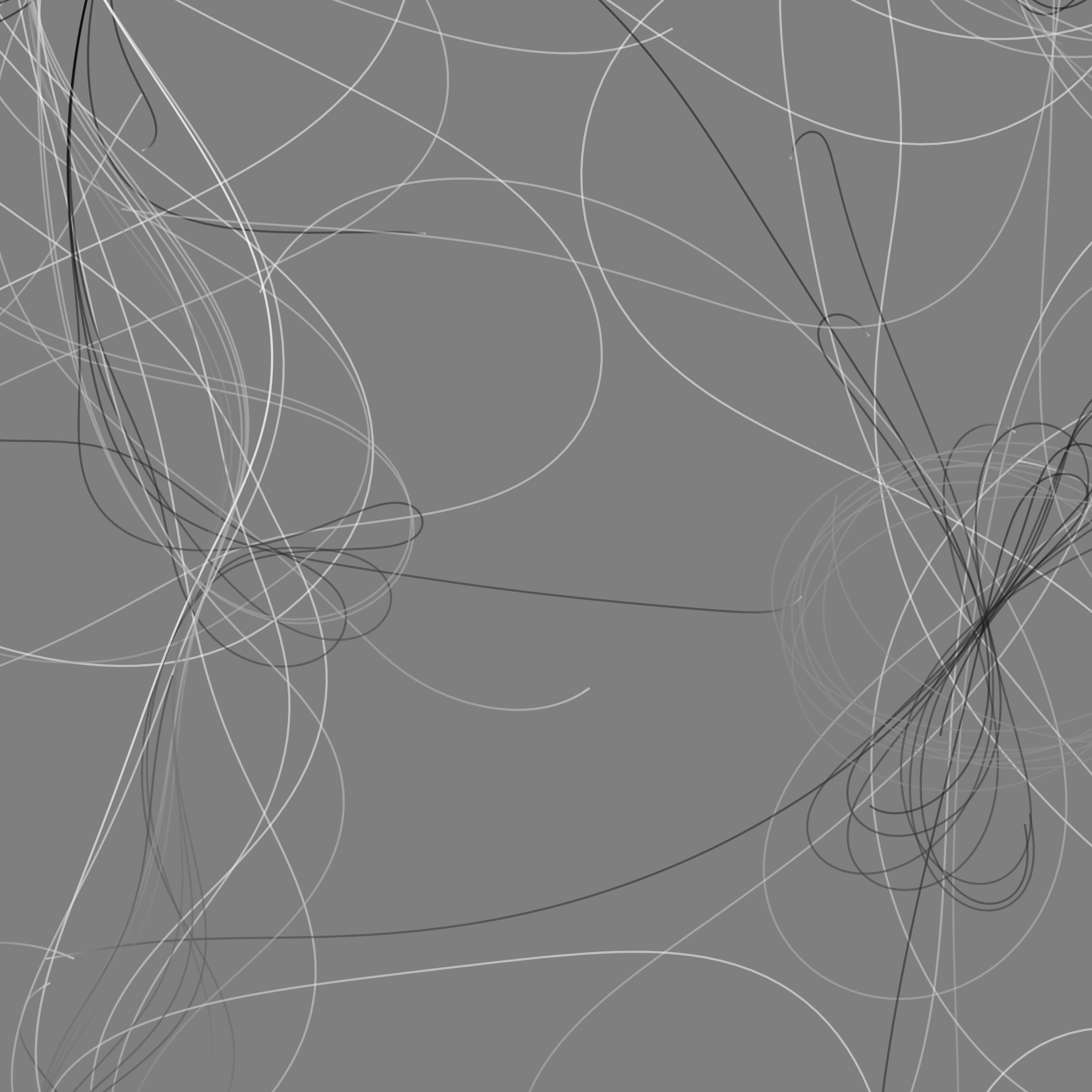 “Phototaxis” is a simulated environment populated by simple machines. After Valentino Braitenberg’s 1984 book “Vehicles,” there are four kinds of machines with different wiring and behaviors: Explorers, Aggressors, Lovers, and Cowards. Each line charts the history of one machine’s movement. The core of this code was the foundation for my MicroImage series of works dating back to 2001. I’ve worked on it in fits and starts since then, and in 2021 it was further developed for Art Blocks. Press ‘P’ to play/pause, ‘B’ for the big bang, ‘1’–’5’ to change the magnification, and ‘L’ to reveal the lights’ locations.