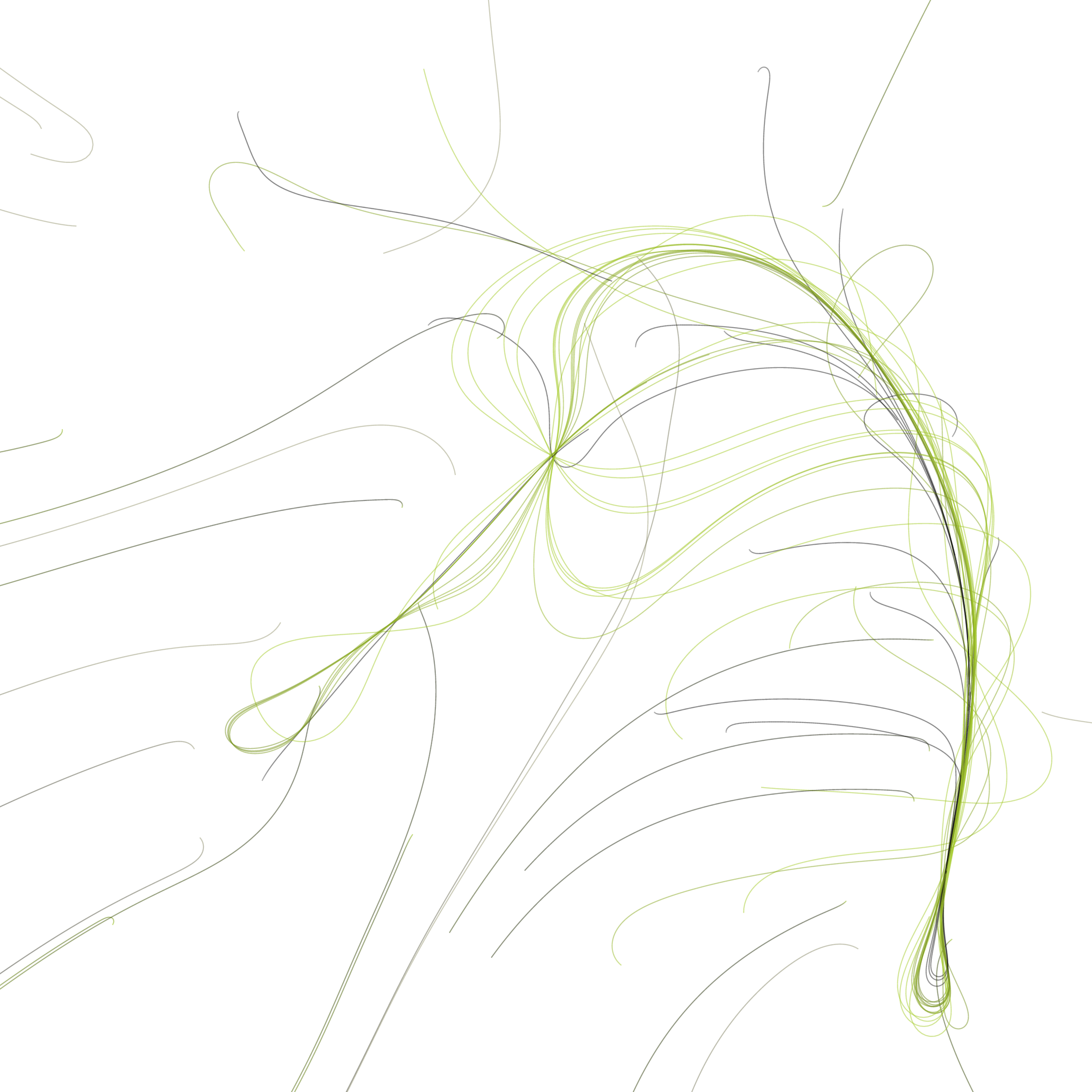 “Phototaxis” is a simulated environment populated by simple machines. After Valentino Braitenberg’s 1984 book “Vehicles,” there are four kinds of machines with different wiring and behaviors: Explorers, Aggressors, Lovers, and Cowards. Each line charts the history of one machine’s movement. The core of this code was the foundation for my MicroImage series of works dating back to 2001. I’ve worked on it in fits and starts since then, and in 2021 it was further developed for Art Blocks. Press ‘P’ to play/pause, ‘B’ for the big bang, ‘1’–’5’ to change the magnification, and ‘L’ to reveal the lights’ locations.