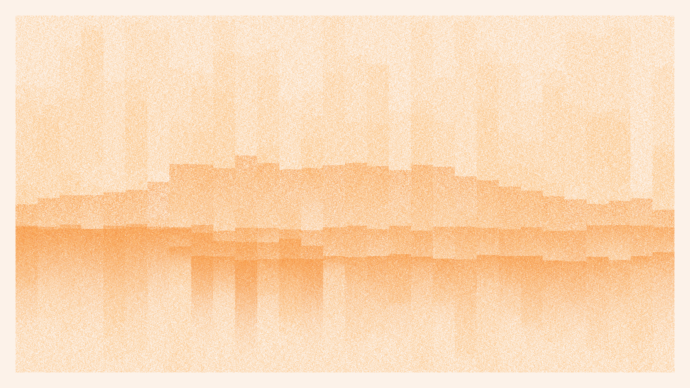 The Pointila algorithm first divides the canvas into columns. It then traverses the canvas dropping dots along those columns. From just a handful of layers, landscapes emerge. They take on a variety of forms: from rolling plains and steep canyons to jagged peaks and dreamy moors. Some are sharp and tense, others hazy and ethereal. They are coloured with handpicked palettes and animated with bold glitches – a nod to the shared optics of Pointillism and pixels.