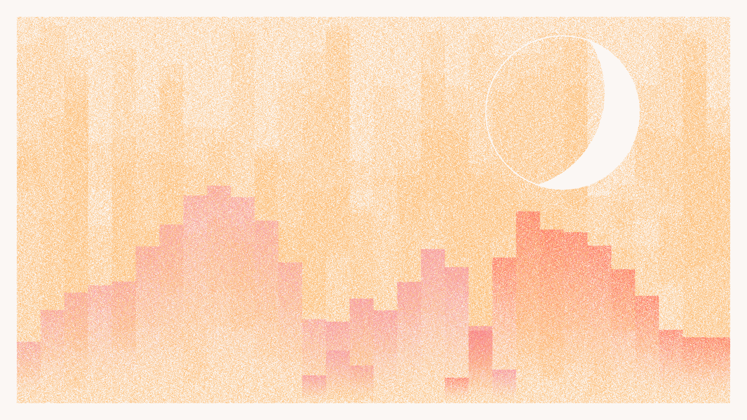 The Pointila algorithm first divides the canvas into columns. It then traverses the canvas dropping dots along those columns. From just a handful of layers, landscapes emerge. They take on a variety of forms: from rolling plains and steep canyons to jagged peaks and dreamy moors. Some are sharp and tense, others hazy and ethereal. They are coloured with handpicked palettes and animated with bold glitches – a nod to the shared optics of Pointillism and pixels.