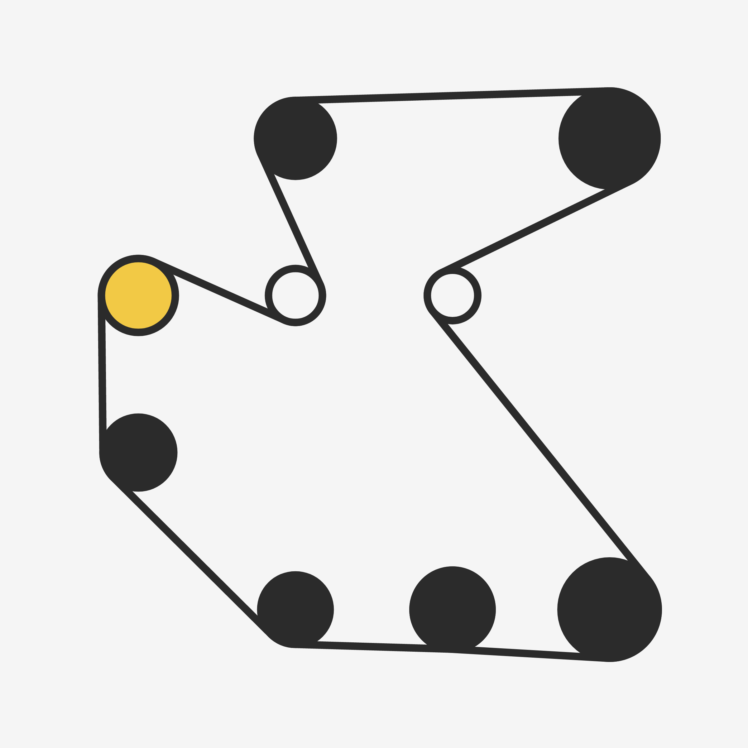 There are an almost infinite number of ways to wrap a string around a set of pegs. On the surface it may seem like a simple concept but prepare to be surprised and delighted at the variety of combinations the algorithm can produce. Each output from 'Ringers' is derived from a unique transaction hash and generated in Javascript in the browser. Feature variations include peg count, sizing, layout, wrap orientation, and a few colorful flourishes for good measure.