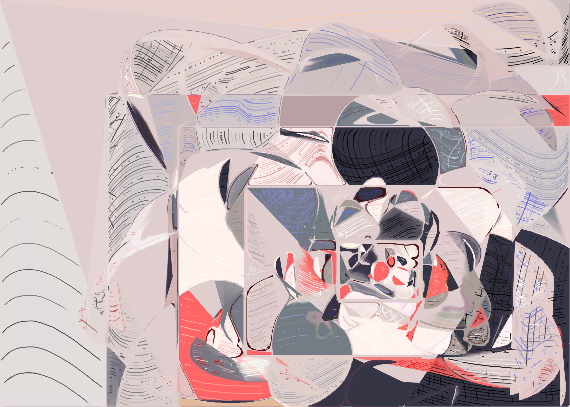The rendering of **Running Moon** is inspired by stained glass and watercolor. It captures the sharpness of the glass and the softness of light using abstract forms. As organic shapes gradually expand to fill the space, brush-pen-like stripes solder these pieces together to form intricate compositions.