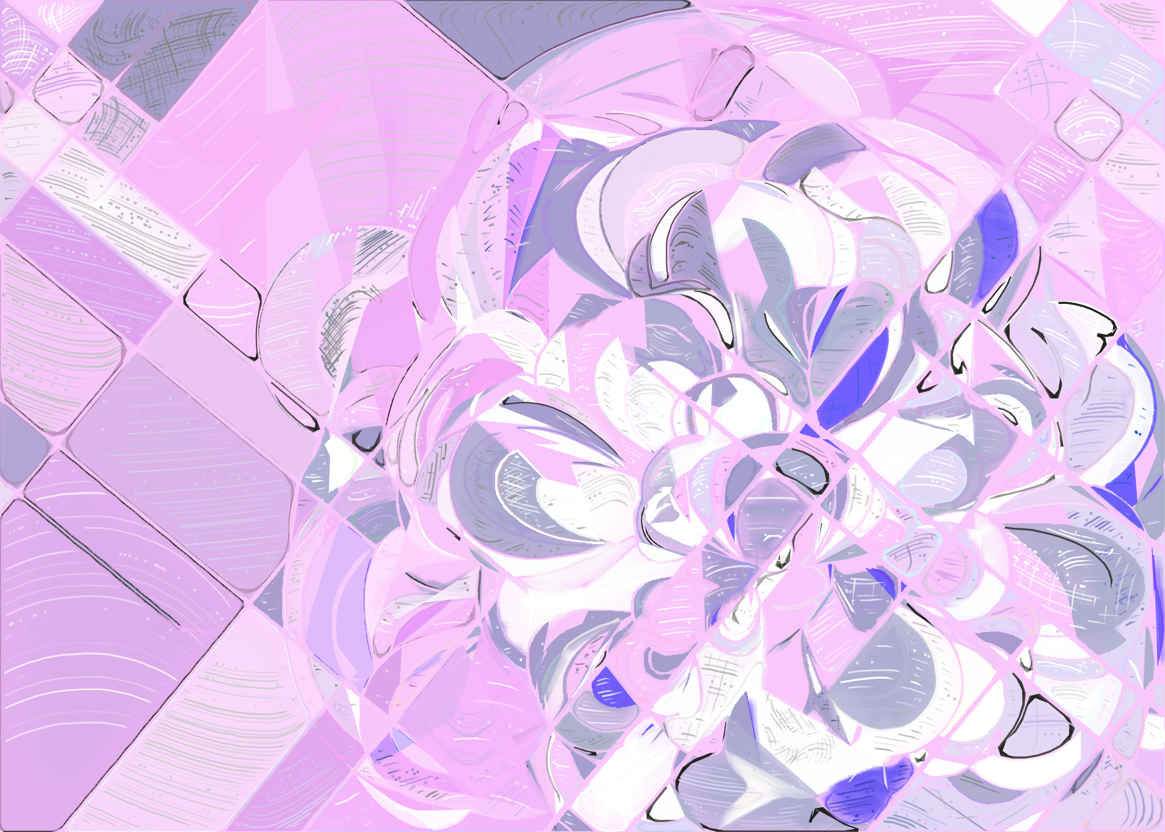 The rendering of **Running Moon** is inspired by stained glass and watercolor. It captures the sharpness of the glass and the softness of light using abstract forms. As organic shapes gradually expand to fill the space, brush-pen-like stripes solder these pieces together to form intricate compositions.