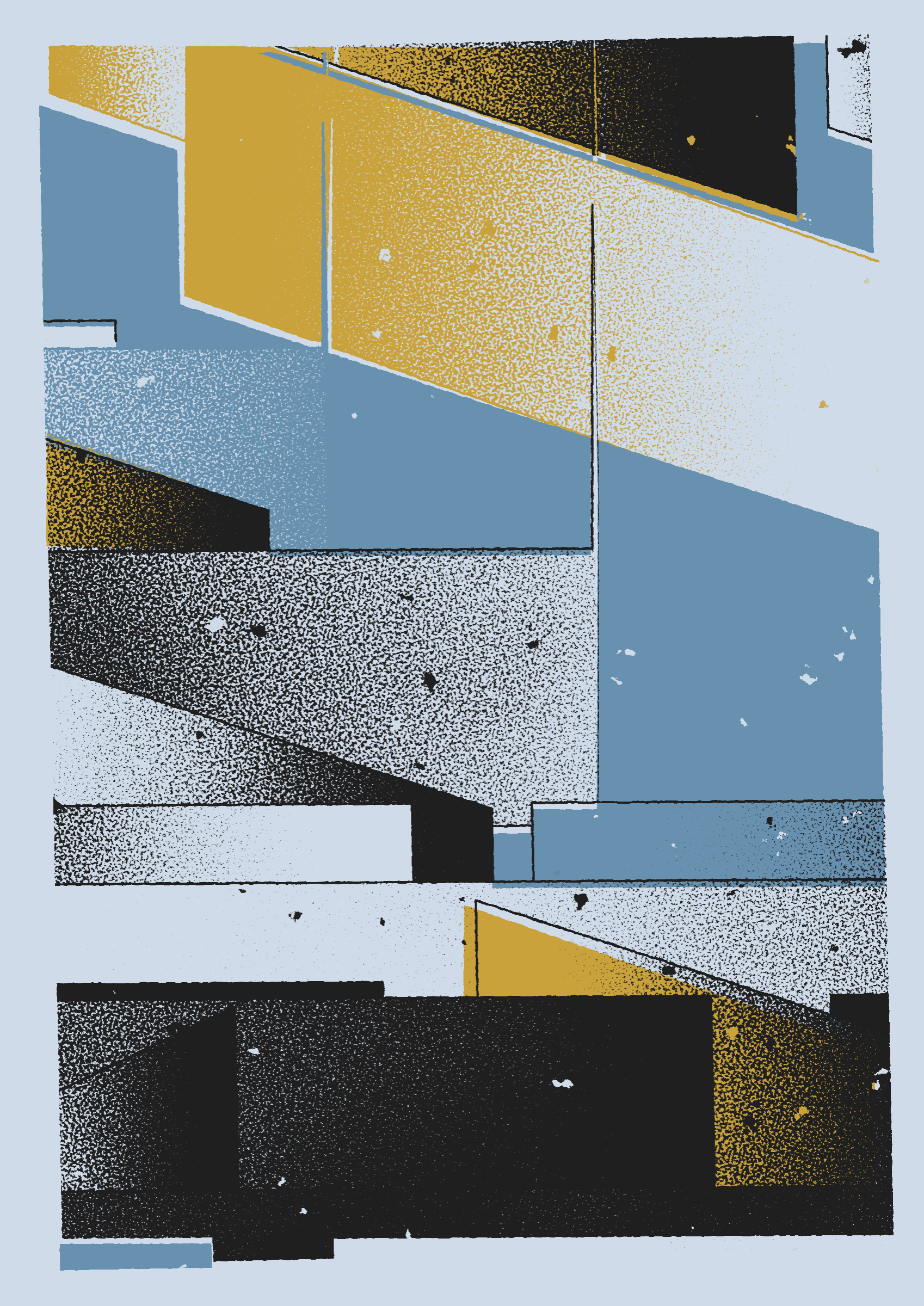 The generative system underlying the rendering mimics the screen printing process by rendering and applying a single color at a time to a master image. Each virtual screen may be more or less aligned with the master, creating a lovely flawed balance to the precision of the rendered geometry.