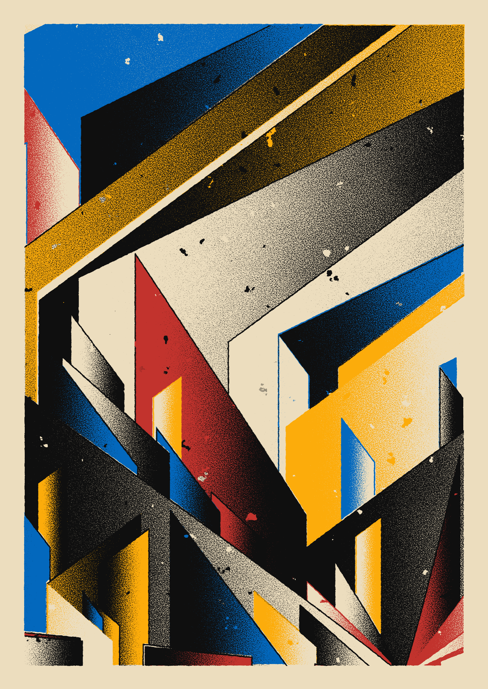 The "Screens" series is a celebration of modern art. It is inspired by the aesthetics inherent in screen printing along with the compositions and colors of both Bauhaus, Constructivism, and pulp fiction sci-fi covers.