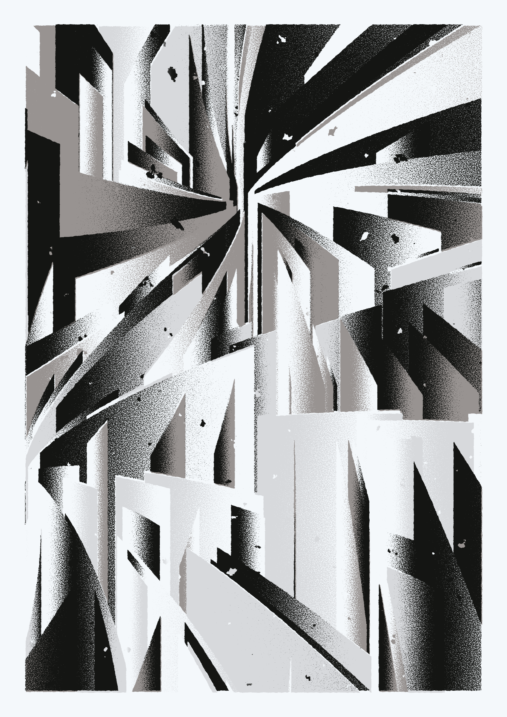The compositions in "Screens" is based purely on strict geometries and plays with the tension, and symphonies that can be created from combining simple rules. The end result can range from chaotic non-figurative to strongly ordered isometric scenes.
