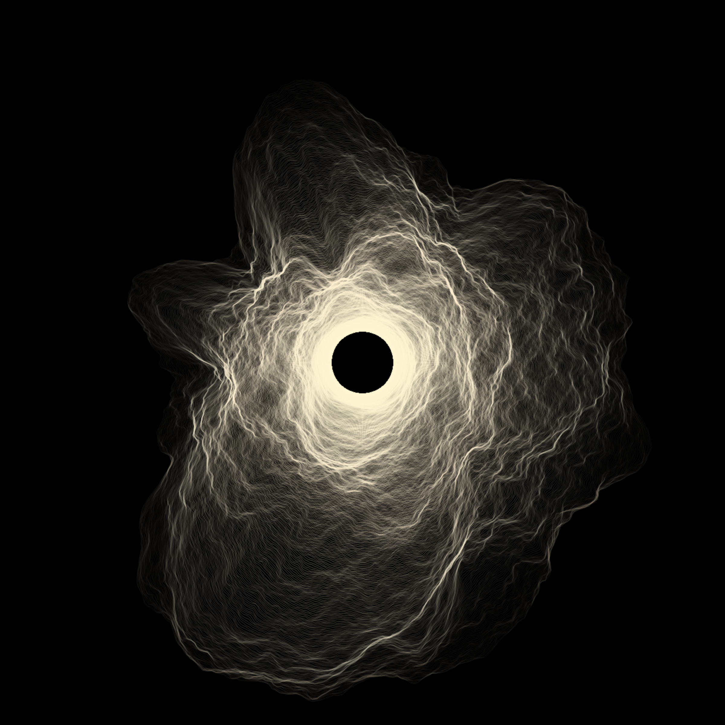 Every Singularity is unique. Each form’s properties; Symmetry, Chaos, Mass, Force and Turbulence are driven by data extracted from the transaction hash.