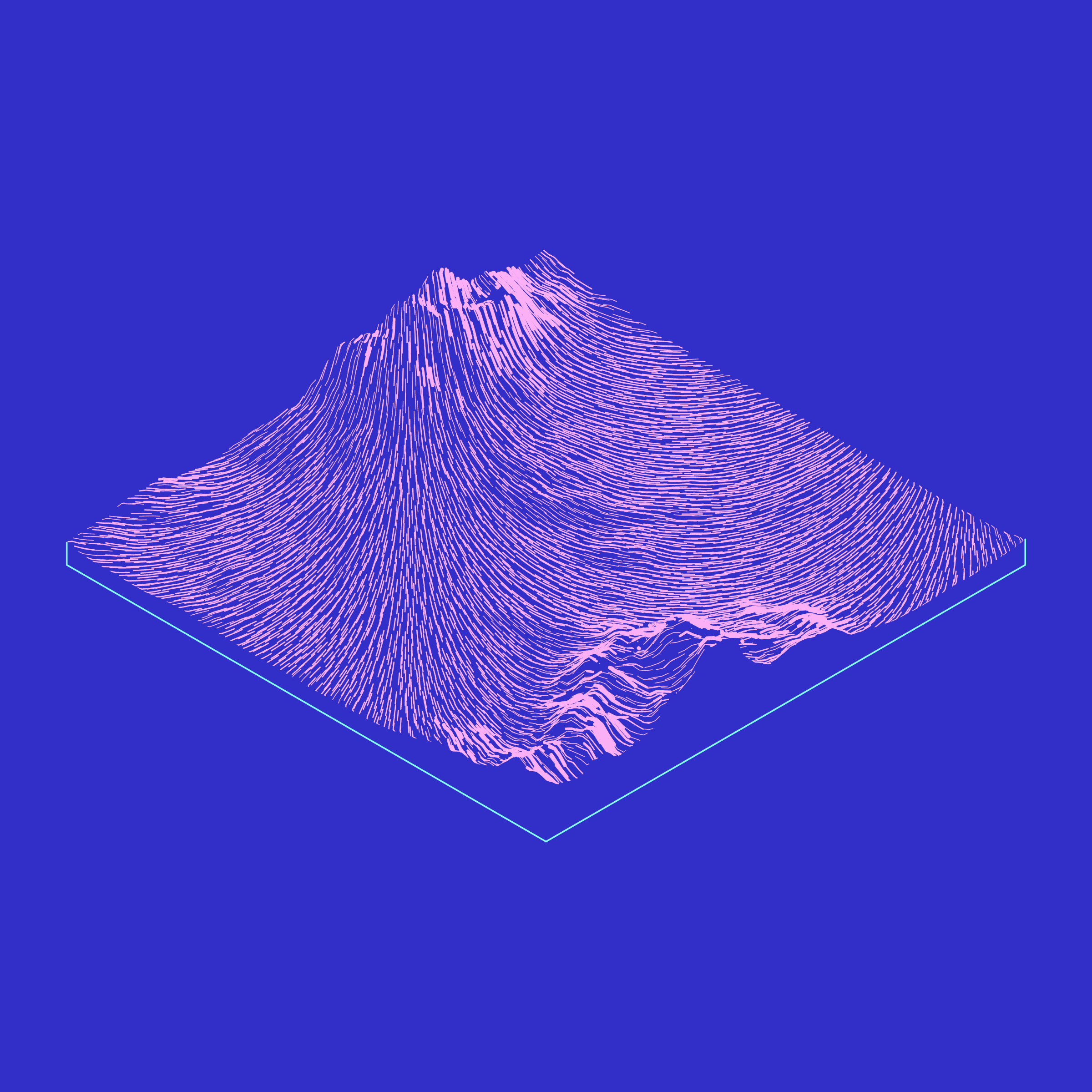 A generative algorithm that draws the impression of a landscape from a multitude of possibilities. The unique seed from each token drives the parametric assortment of lines, colors, and forms into a constructed composition.