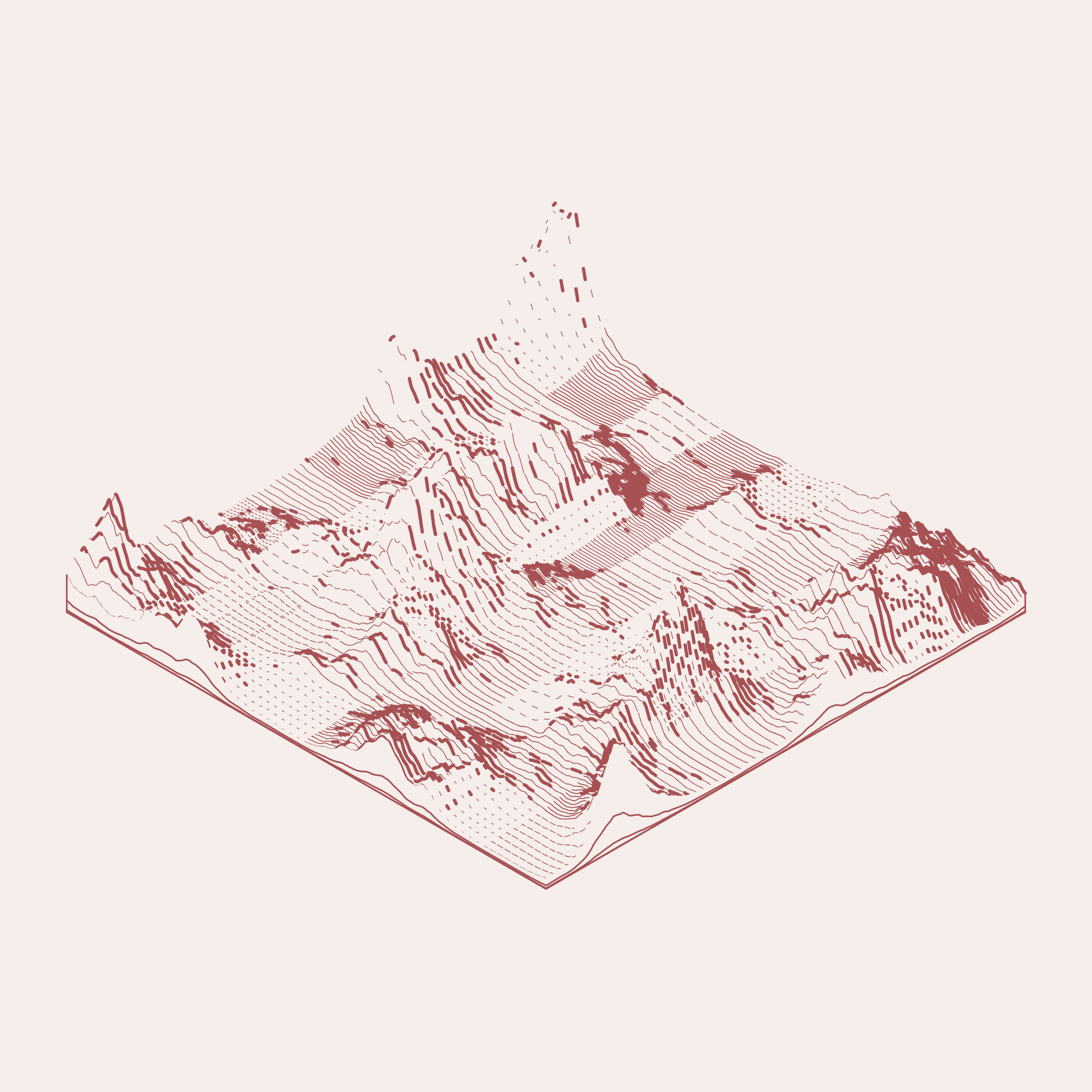 A generative algorithm that draws the impression of a landscape from a multitude of possibilities. The unique seed from each token drives the parametric assortment of lines, colors, and forms into a constructed composition.