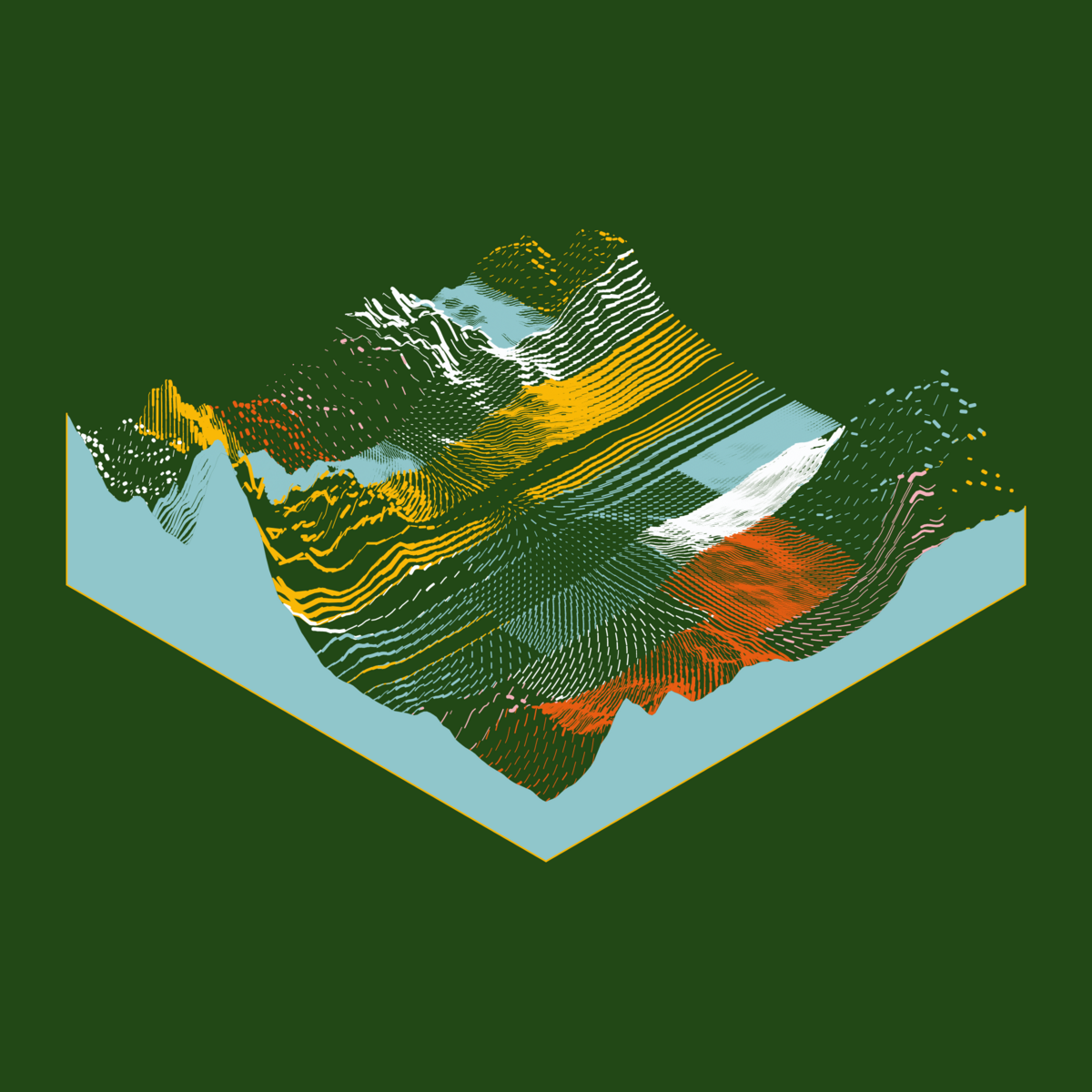 A generative algorithm that draws the impression of a landscape from a multitude of possibilities. The unique seed from each token drives the parametric assortment of lines, colors, and forms into a constructed composition.