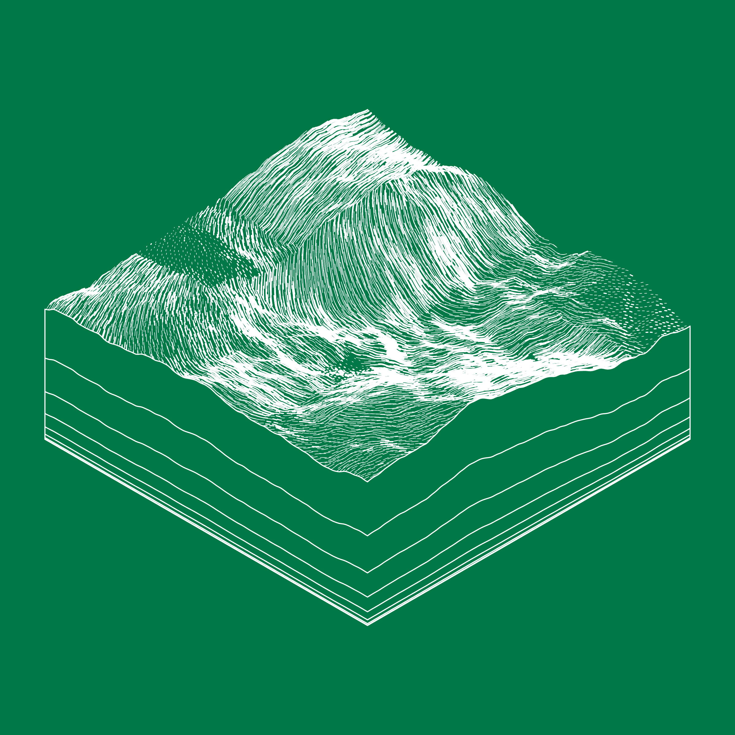 A generative algorithm that draws the impression of a landscape from a multitude of possibilities. The unique seed from each token drives the parametric assortment of lines, colors, and forms into a constructed composition.