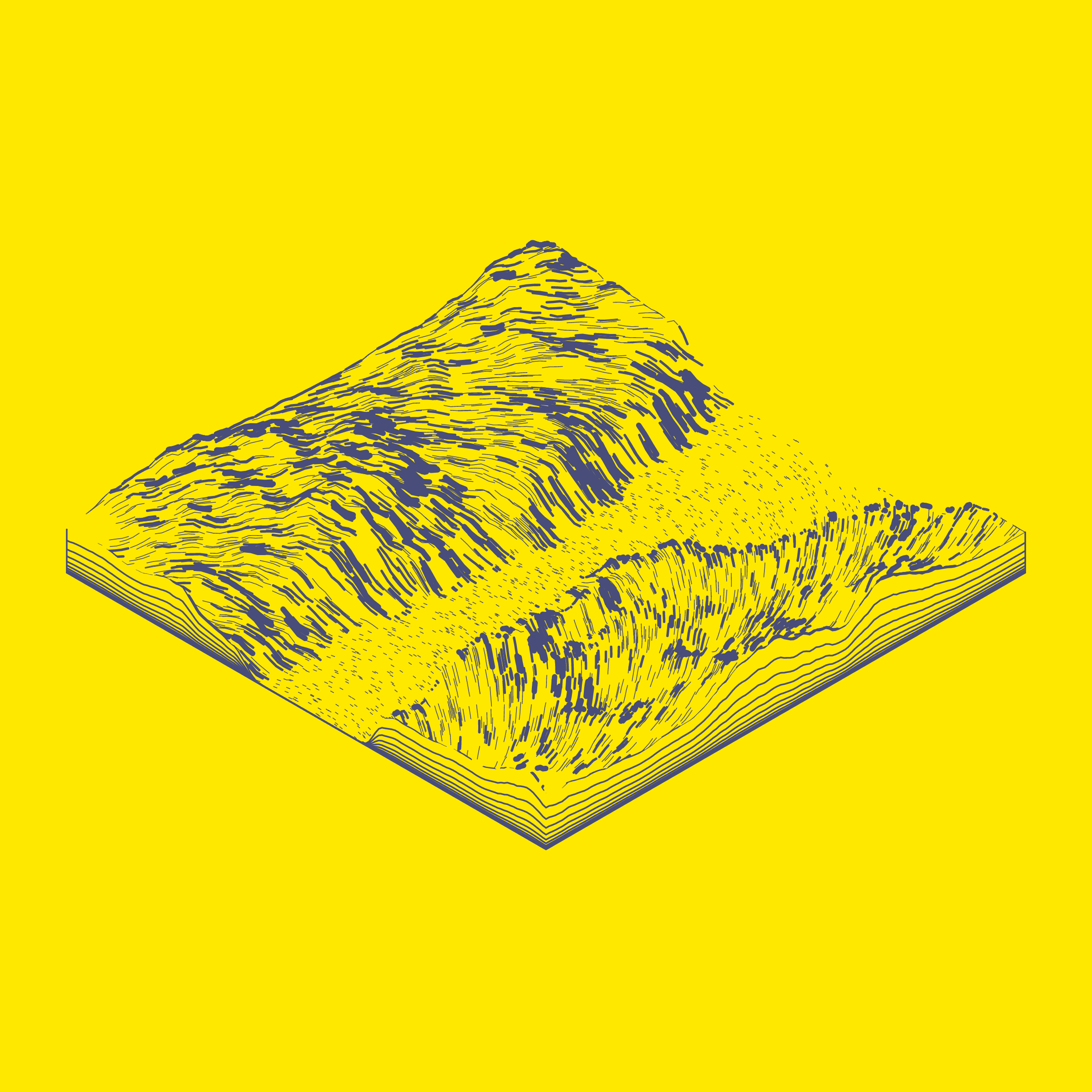 A generative algorithm that draws the impression of a landscape from a multitude of possibilities. The unique seed from each token drives the parametric assortment of lines, colors, and forms into a constructed composition.
