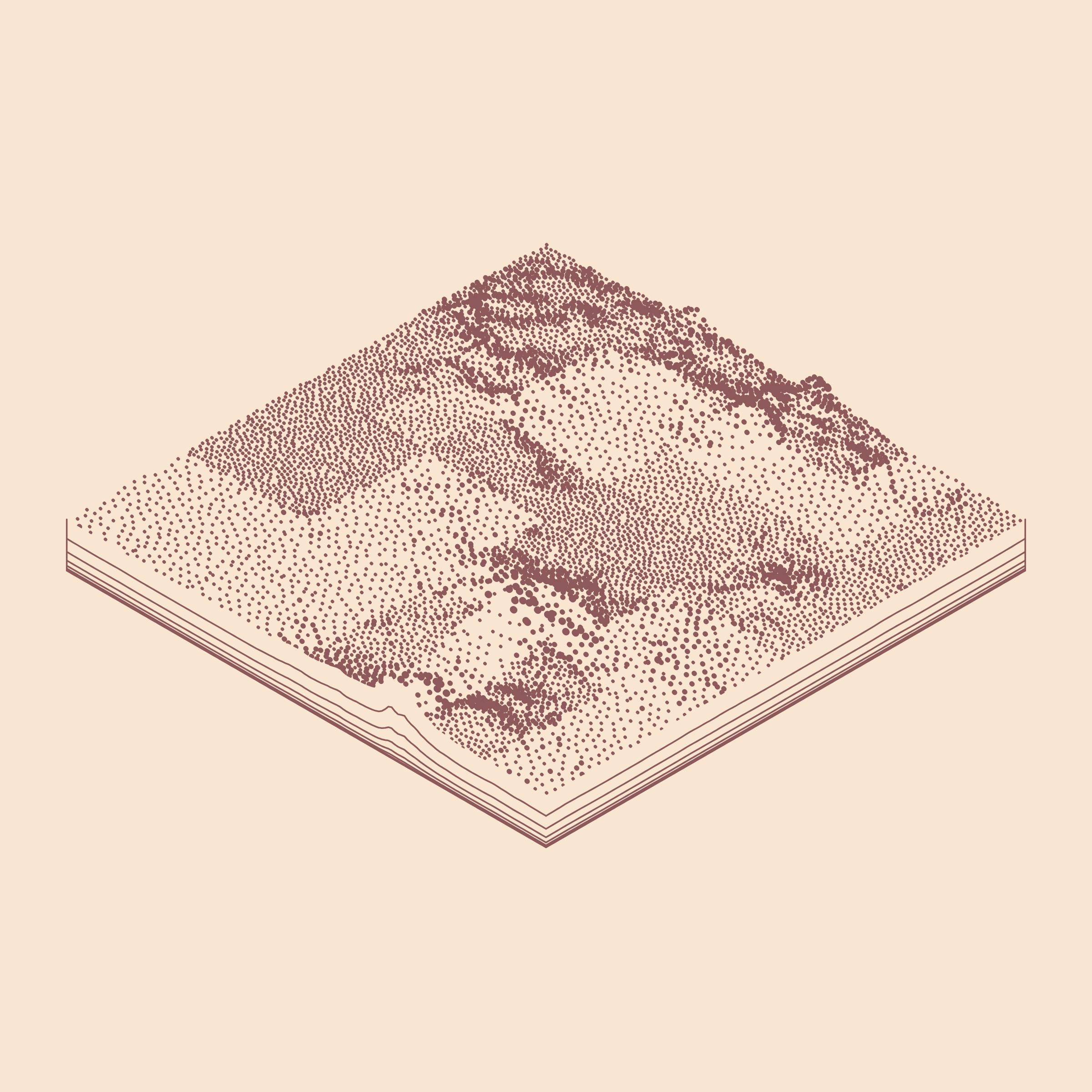 A generative algorithm that draws the impression of a landscape from a multitude of possibilities. The unique seed from each token drives the parametric assortment of lines, colors, and forms into a constructed composition.