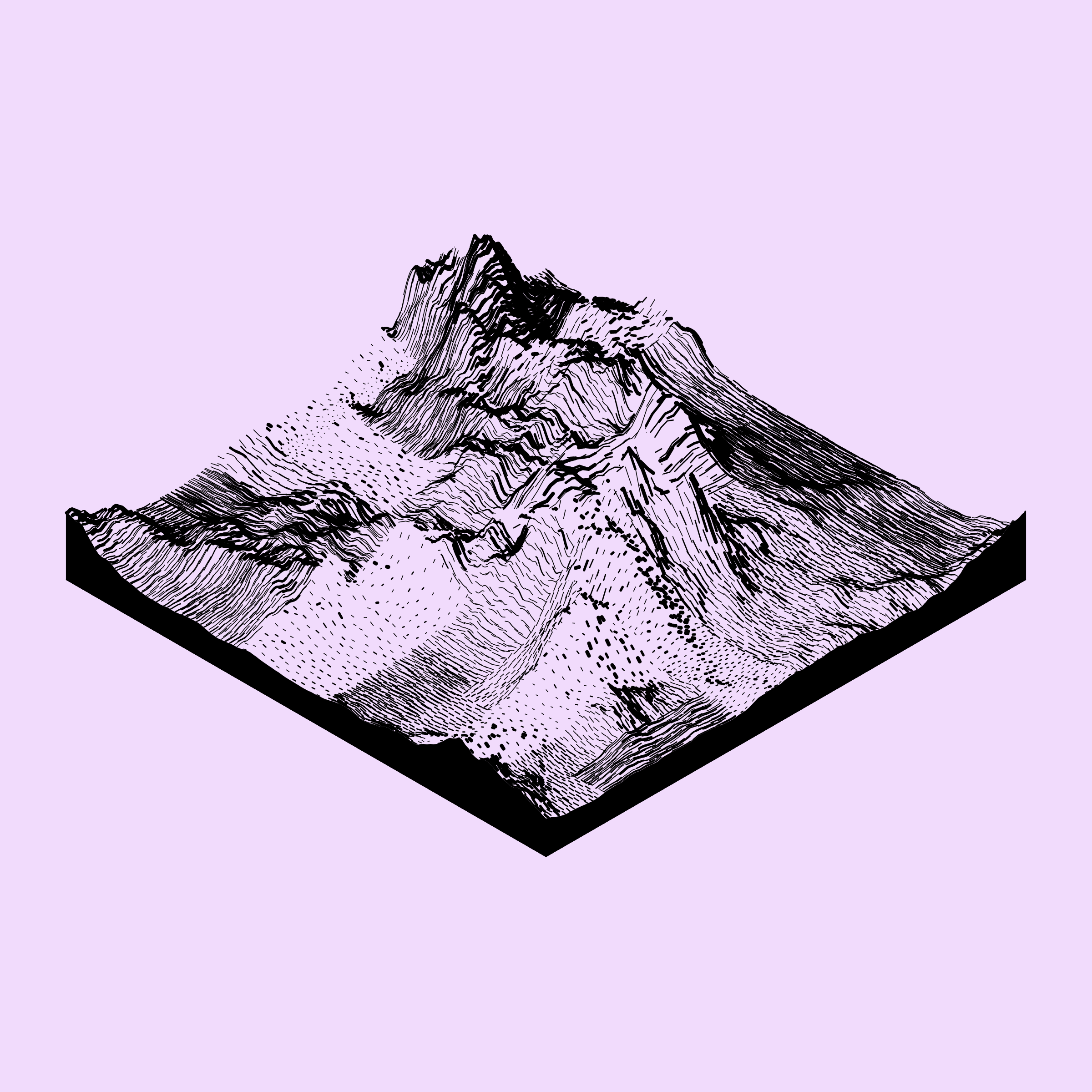 A generative algorithm that draws the impression of a landscape from a multitude of possibilities. The unique seed from each token drives the parametric assortment of lines, colors, and forms into a constructed composition.