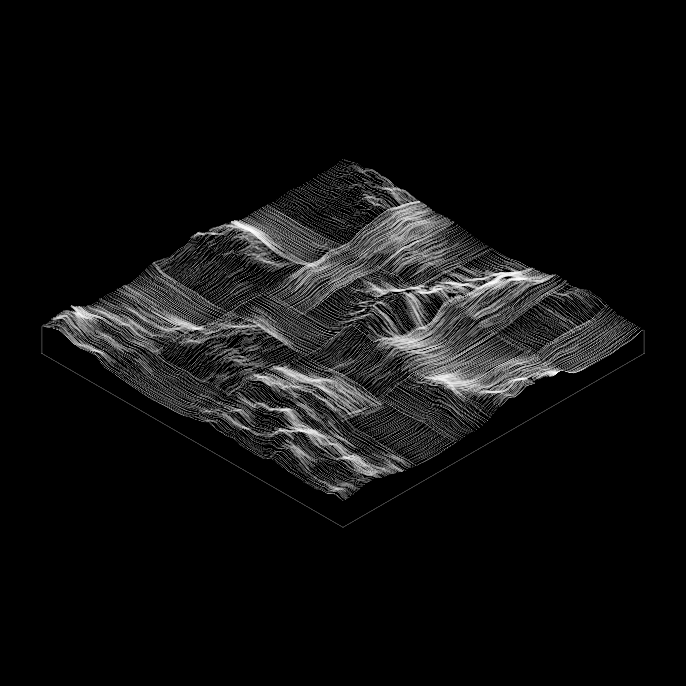 A generative algorithm that draws the impression of a landscape from a multitude of possibilities. The unique seed from each token drives the parametric assortment of lines, colors, and forms into a constructed composition.