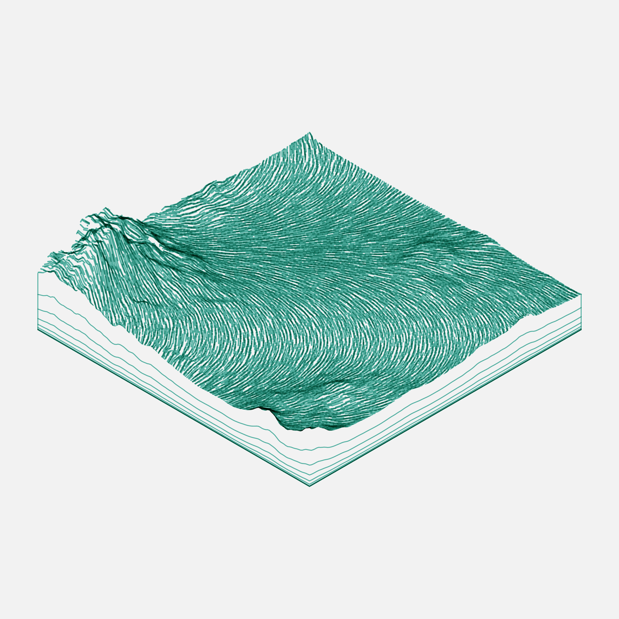 A generative algorithm that draws the impression of a landscape from a multitude of possibilities. The unique seed from each token drives the parametric assortment of lines, colors, and forms into a constructed composition.