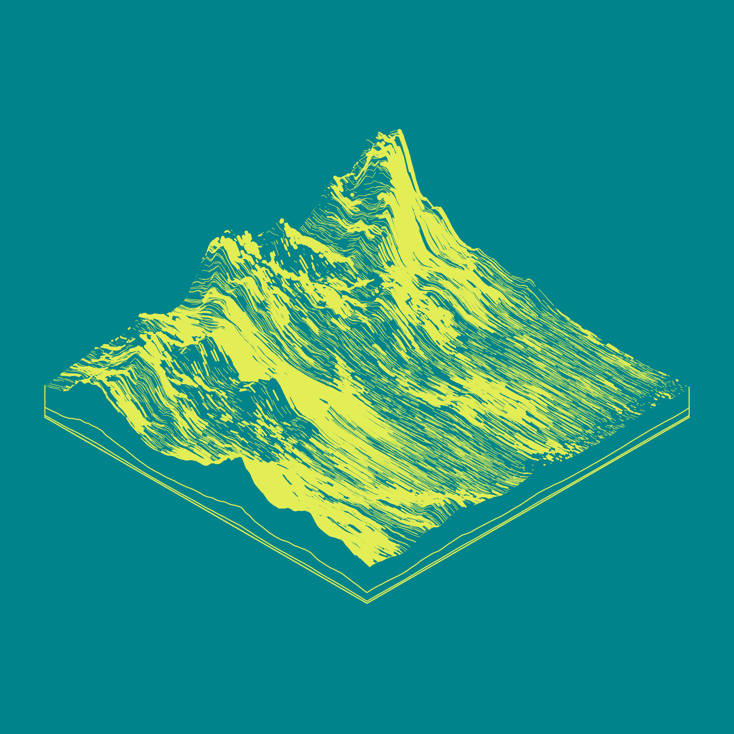 A generative algorithm that draws the impression of a landscape from a multitude of possibilities. The unique seed from each token drives the parametric assortment of lines, colors, and forms into a constructed composition.