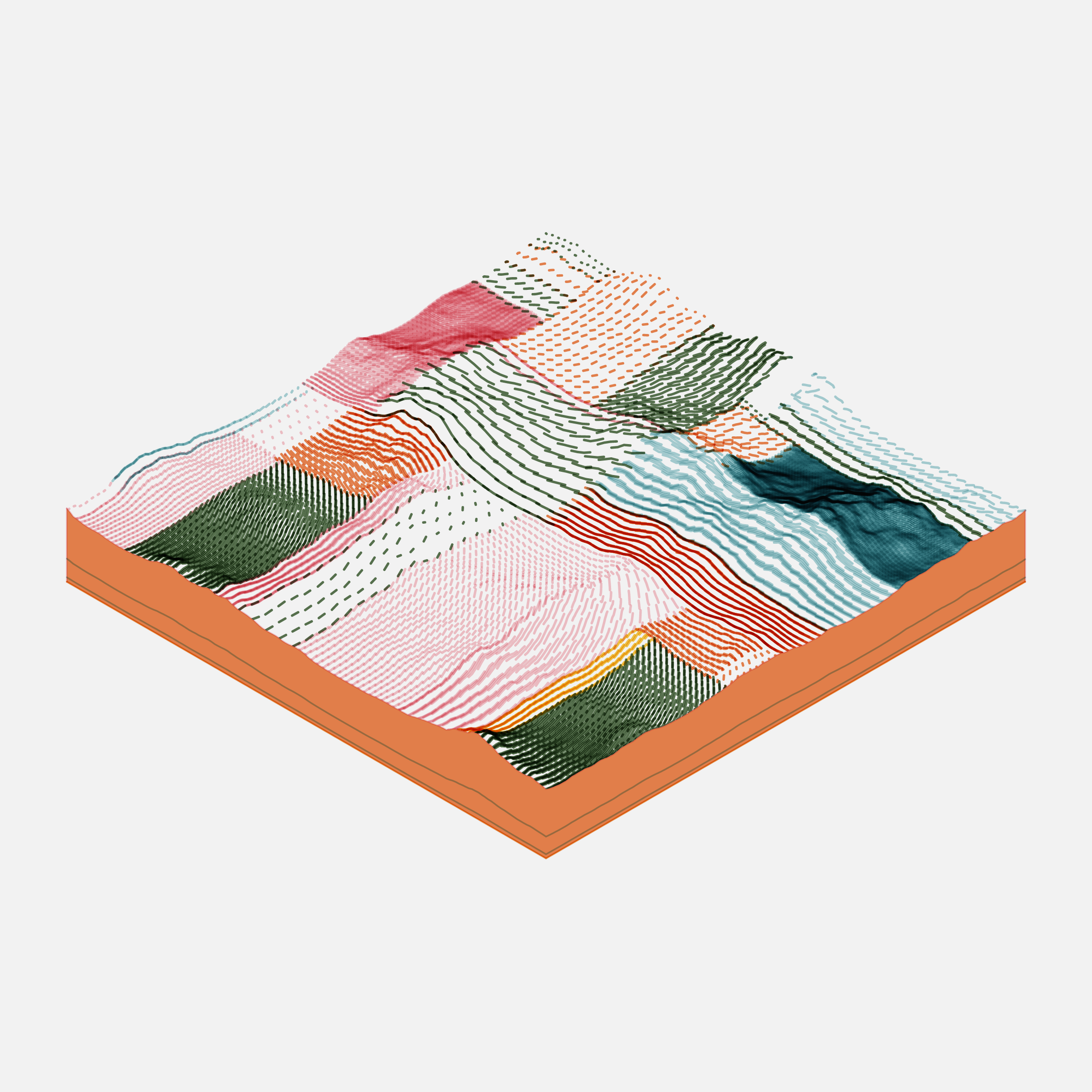 A generative algorithm that draws the impression of a landscape from a multitude of possibilities. The unique seed from each token drives the parametric assortment of lines, colors, and forms into a constructed composition.