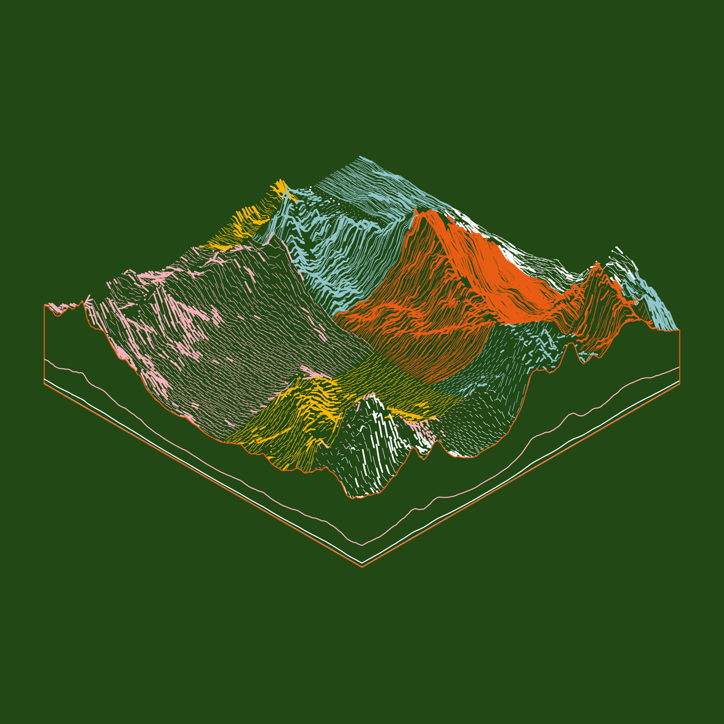 A generative algorithm that draws the impression of a landscape from a multitude of possibilities. The unique seed from each token drives the parametric assortment of lines, colors, and forms into a constructed composition.