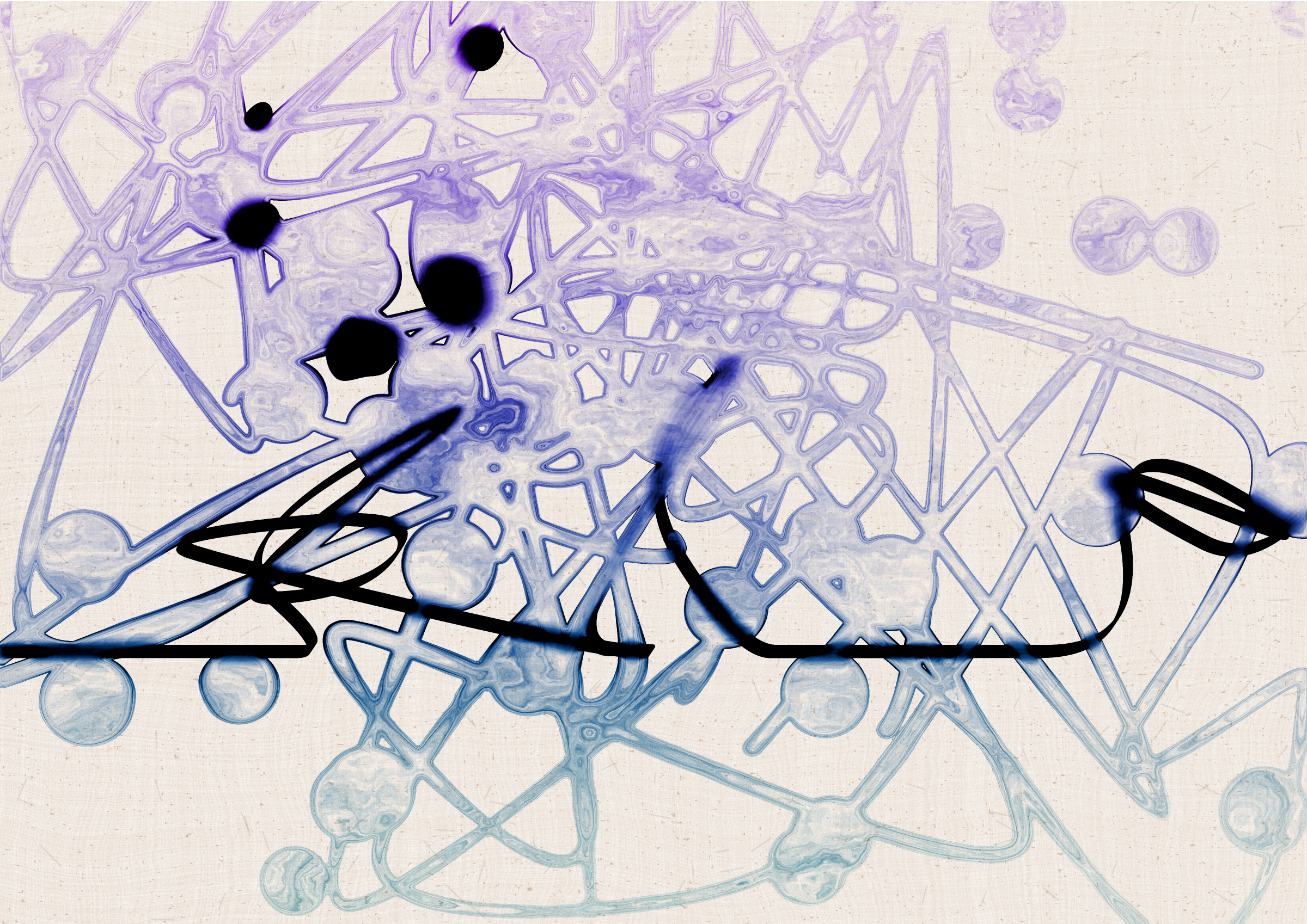 Digital liquid is spilled upon it and takes the ink in directions that are unexpected, uncontrolled, and tell a much more interesting story than the one the line intended.... and often more beautiful.