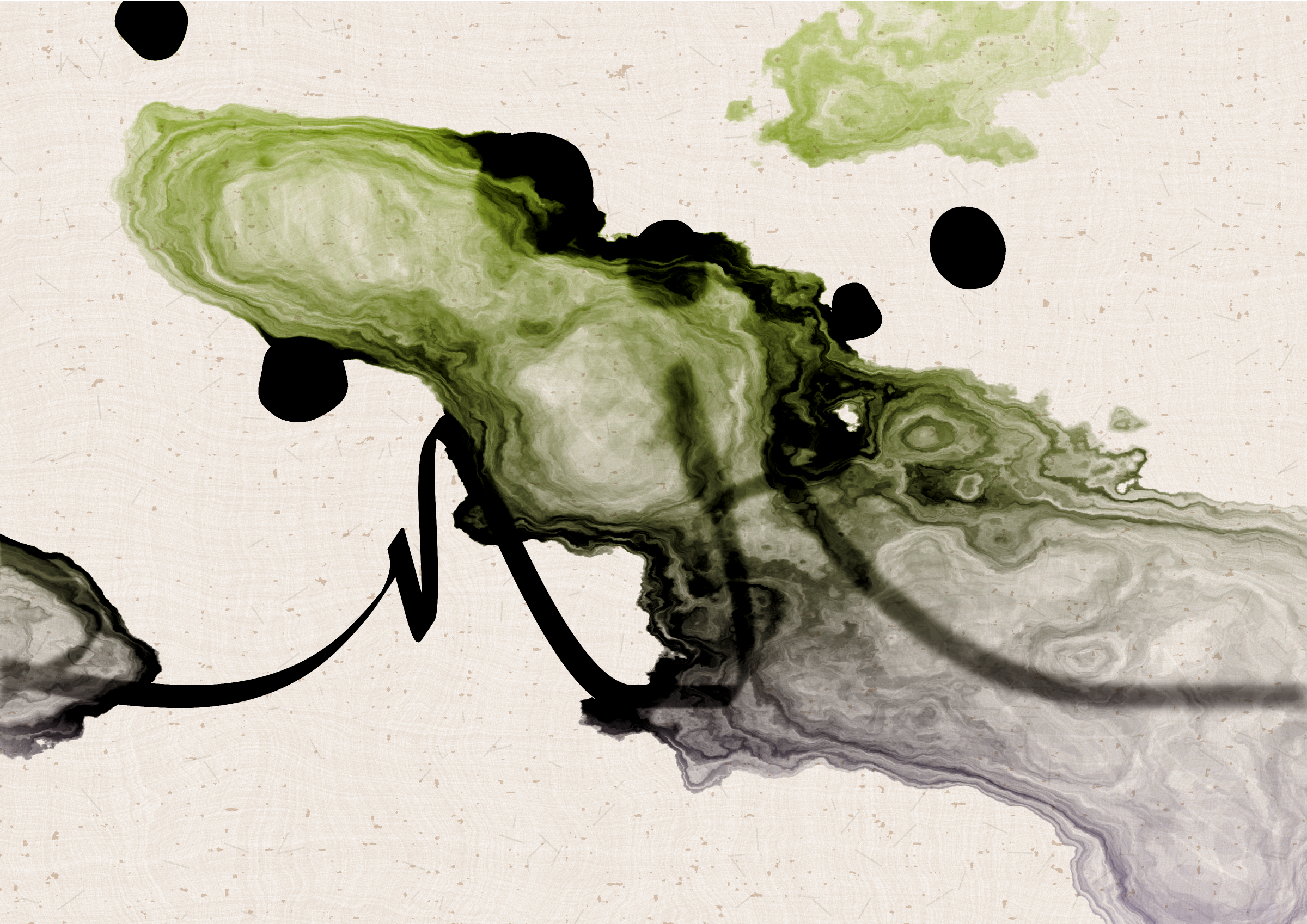 Digital liquid is spilled upon it and takes the ink in directions that are unexpected, uncontrolled, and tell a much more interesting story than the one the line intended.... and often more beautiful.