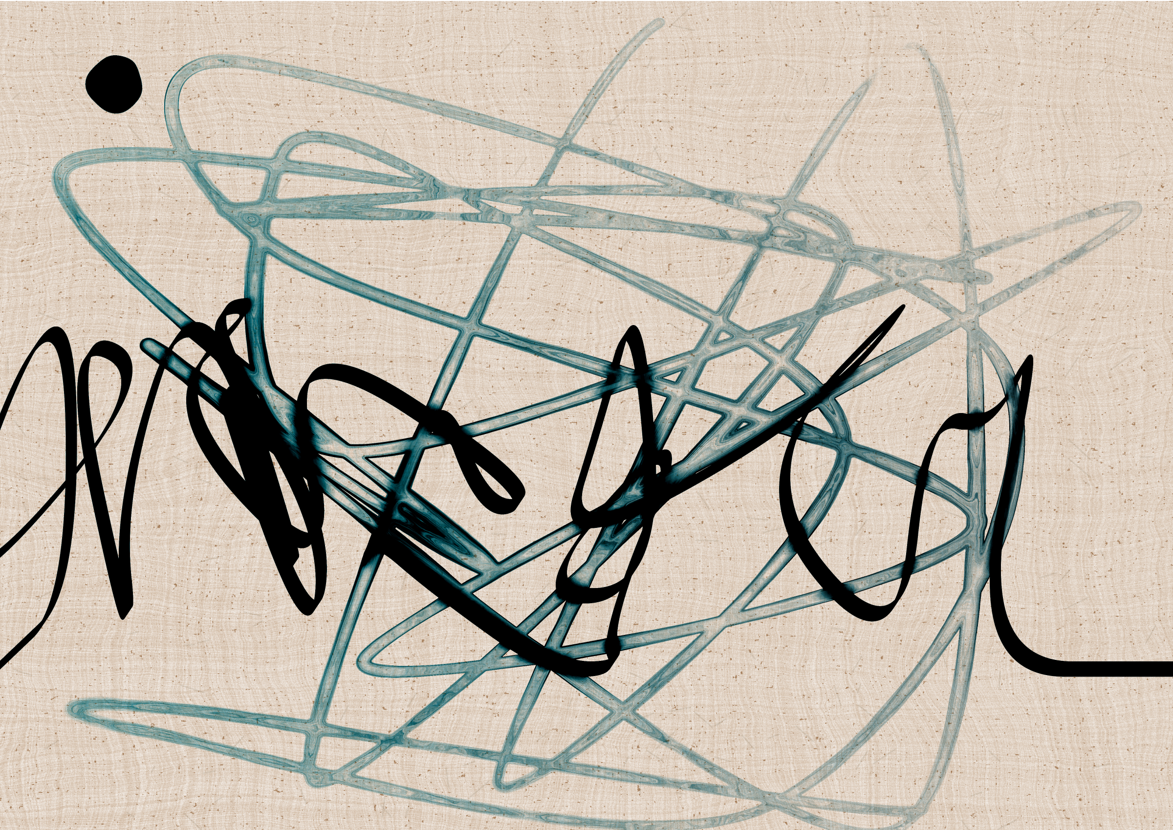 Digital liquid is spilled upon it and takes the ink in directions that are unexpected, uncontrolled, and tell a much more interesting story than the one the line intended.... and often more beautiful.