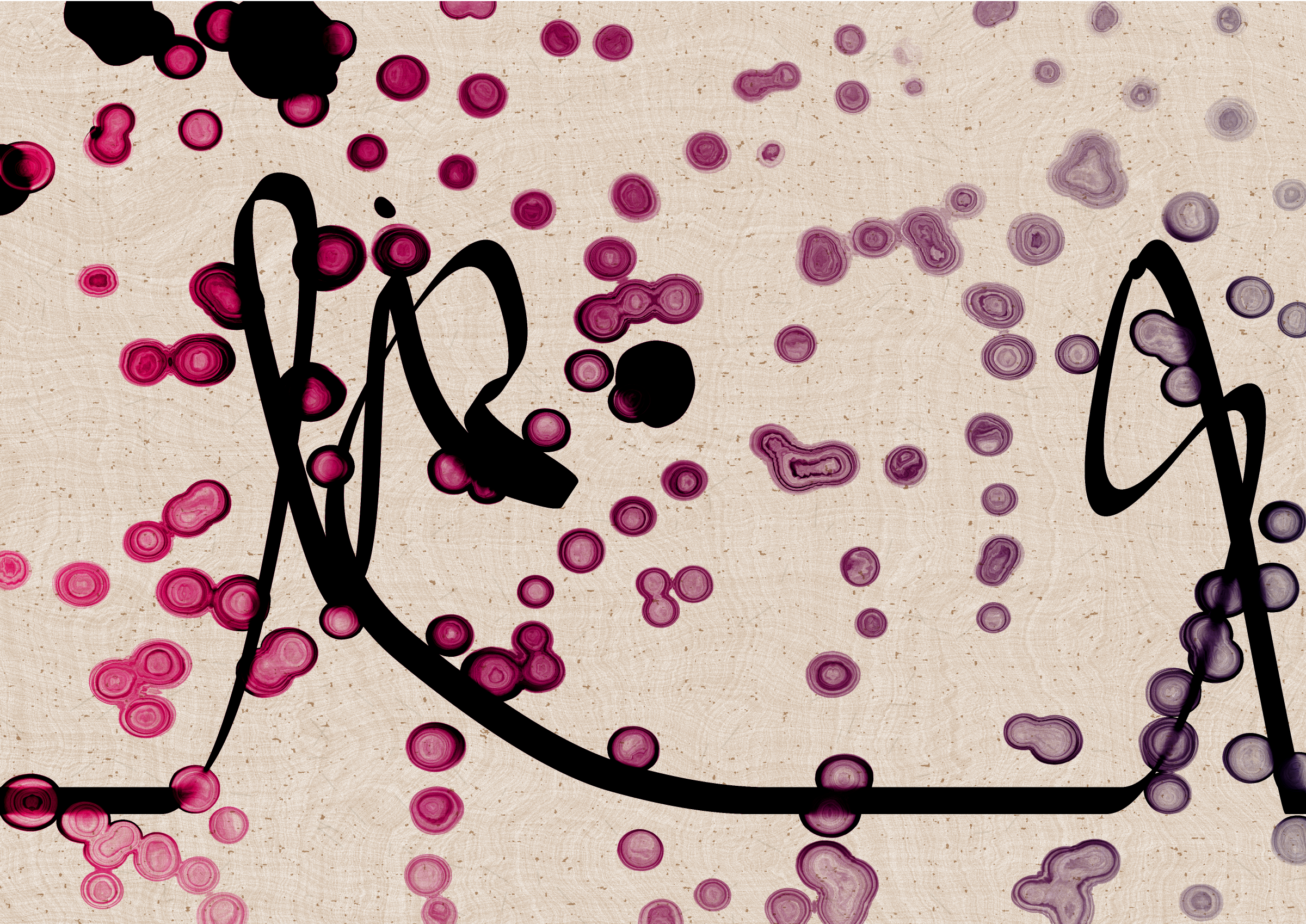 Digital liquid is spilled upon it and takes the ink in directions that are unexpected, uncontrolled, and tell a much more interesting story than the one the line intended.... and often more beautiful.
