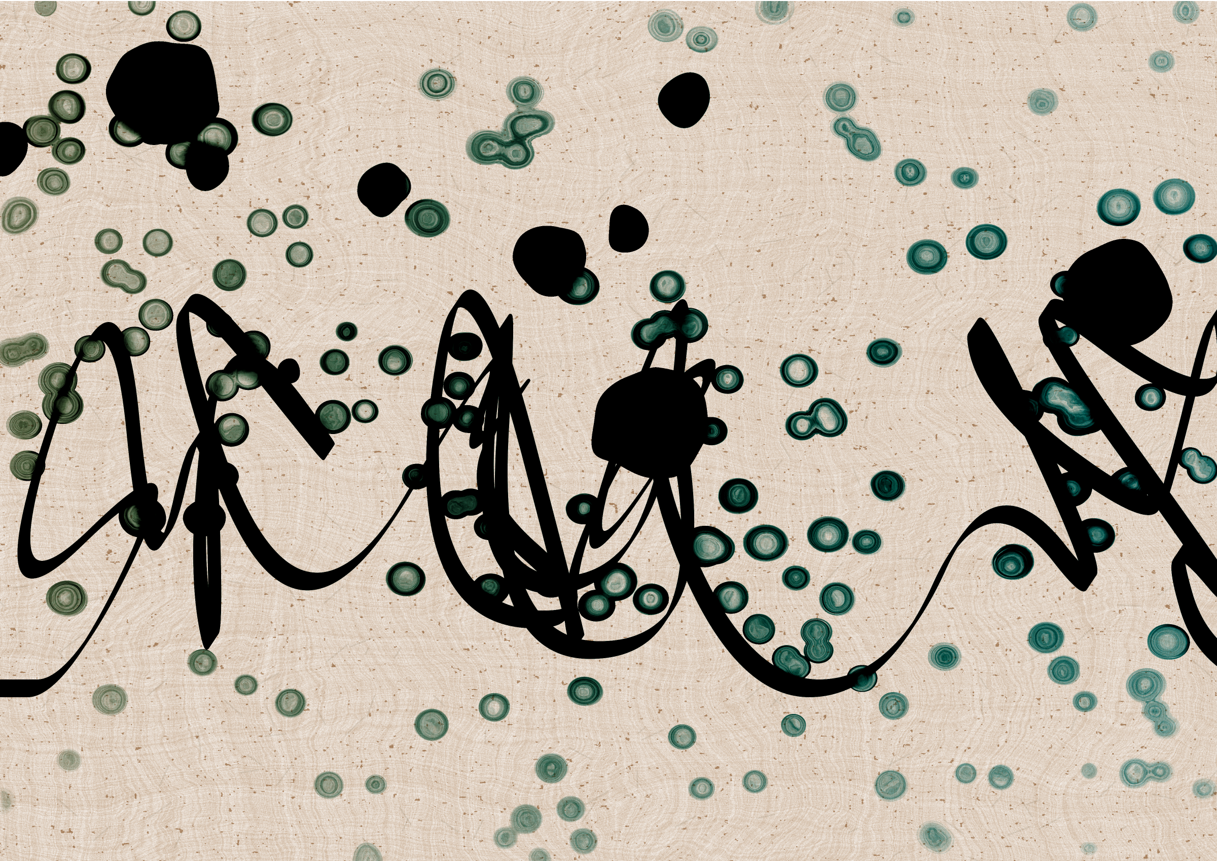 Digital liquid is spilled upon it and takes the ink in directions that are unexpected, uncontrolled, and tell a much more interesting story than the one the line intended.... and often more beautiful.