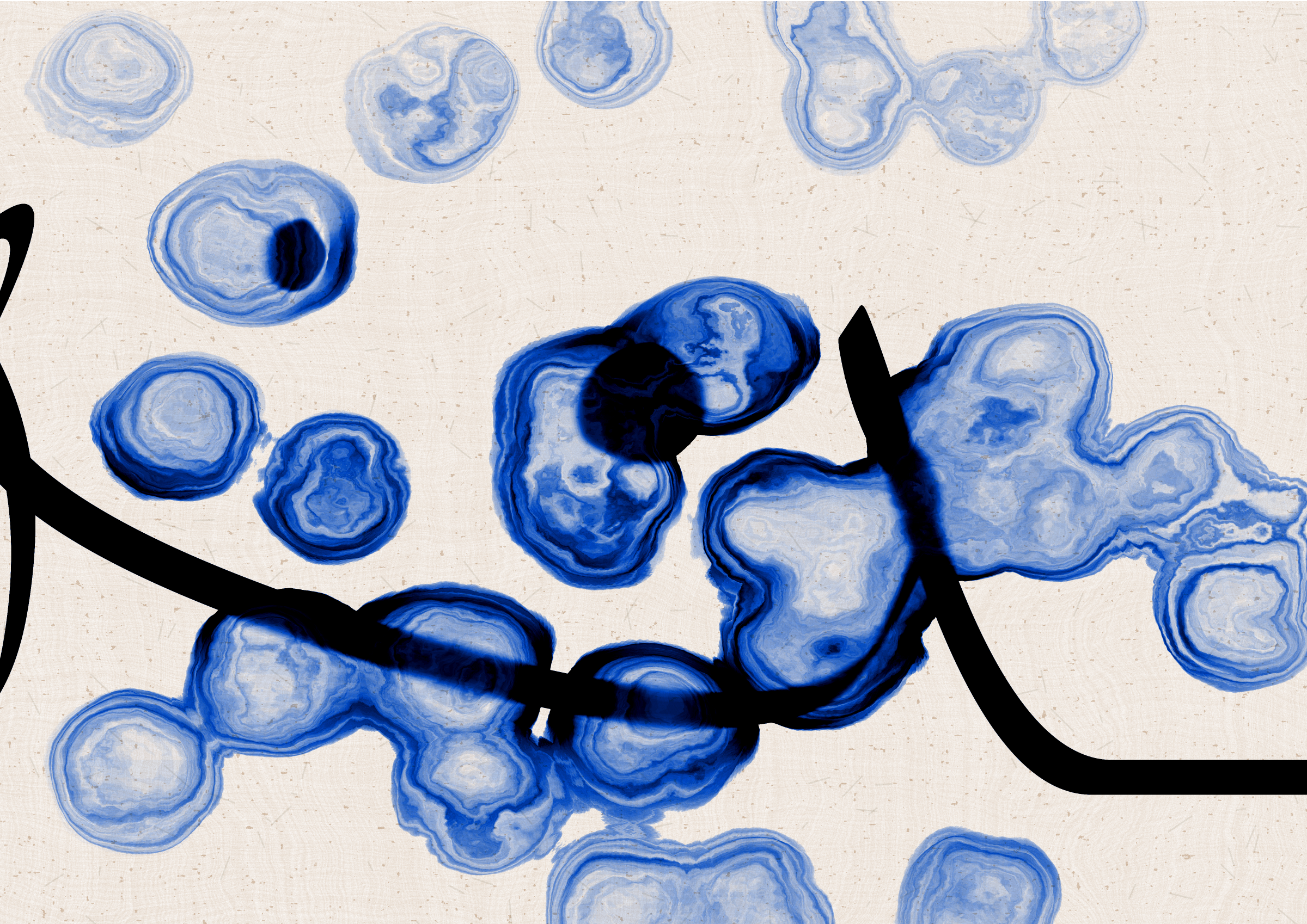 Digital liquid is spilled upon it and takes the ink in directions that are unexpected, uncontrolled, and tell a much more interesting story than the one the line intended.... and often more beautiful.