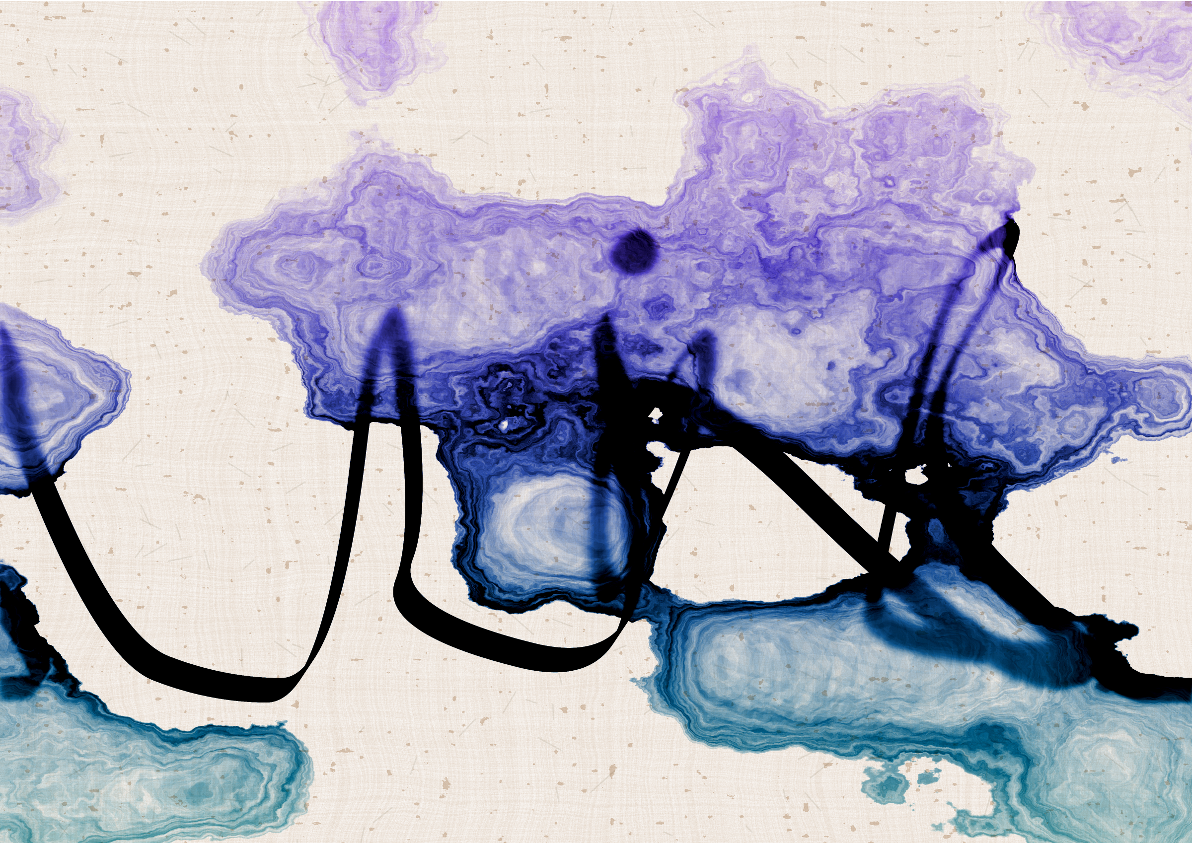 Digital liquid is spilled upon it and takes the ink in directions that are unexpected, uncontrolled, and tell a much more interesting story than the one the line intended.... and often more beautiful.