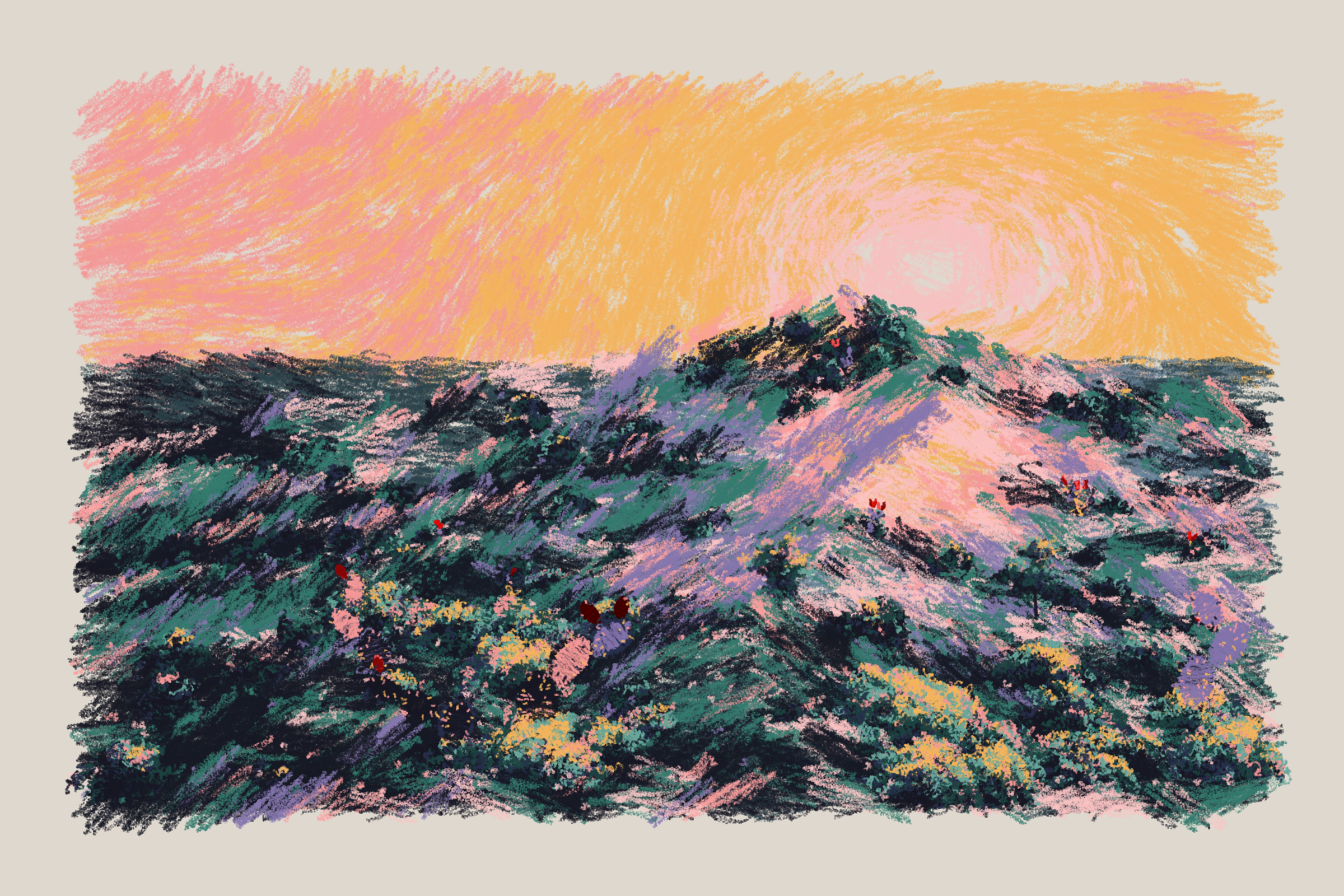 My intention with this work is to capture my memories of those nights, rendered in simulated oil pastels.