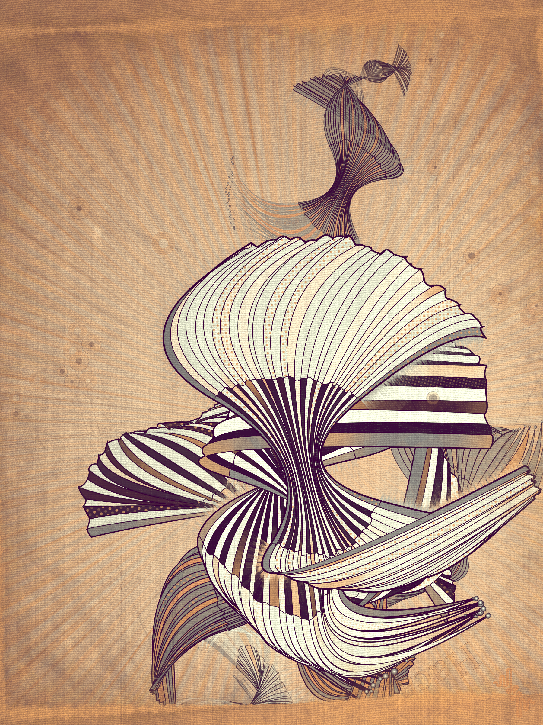 The original ideas evolved by Abstract expressionism and Pop art tell very different stories in the history of post war American art. My approach however is more about just stealing from the visual lexicon of mark-making that characterizes these artistic movements ignoring much of the contextual conversations around them . When I started out building my first primitive for Velum I was picturing in my mind something that looked more like a gestural paint-stroke typical of abstract expressionistic painting. Adding Pop art stylized outlines to the structures however separated them from the background and gave them a floating quality. Liking this effect I quickly forgot about my first idea of making paint strokes to explore the emerging curtain-like elements and found ways to make them dance.