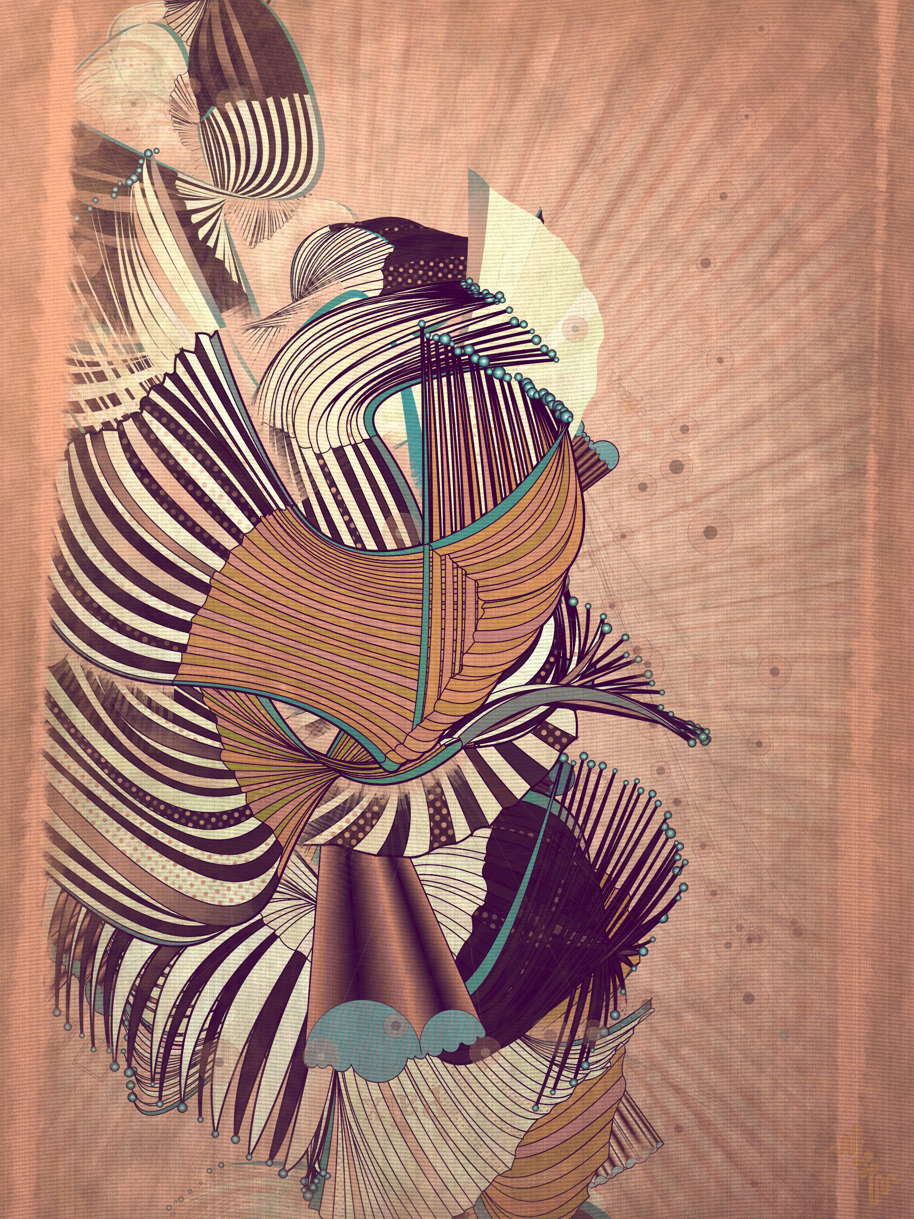 The original ideas evolved by Abstract expressionism and Pop art tell very different stories in the history of post war American art. My approach however is more about just stealing from the visual lexicon of mark-making that characterizes these artistic movements ignoring much of the contextual conversations around them . When I started out building my first primitive for Velum I was picturing in my mind something that looked more like a gestural paint-stroke typical of abstract expressionistic painting. Adding Pop art stylized outlines to the structures however separated them from the background and gave them a floating quality. Liking this effect I quickly forgot about my first idea of making paint strokes to explore the emerging curtain-like elements and found ways to make them dance.