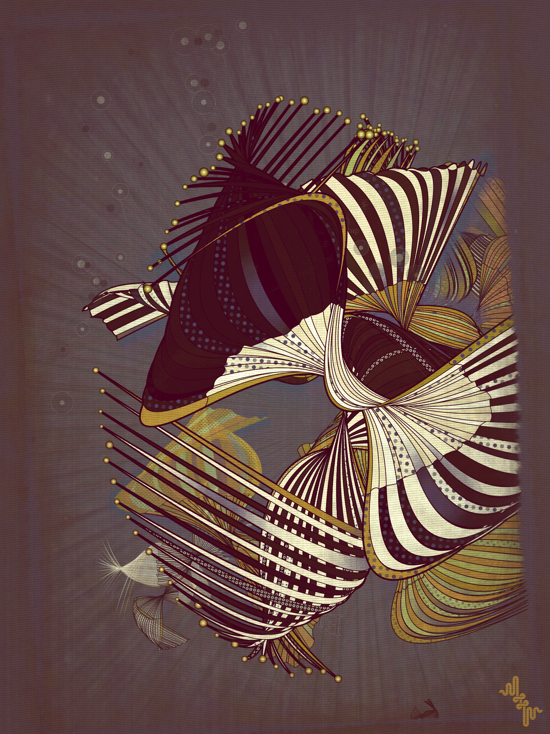 The original ideas evolved by Abstract expressionism and Pop art tell very different stories in the history of post war American art. My approach however is more about just stealing from the visual lexicon of mark-making that characterizes these artistic movements ignoring much of the contextual conversations around them . When I started out building my first primitive for Velum I was picturing in my mind something that looked more like a gestural paint-stroke typical of abstract expressionistic painting. Adding Pop art stylized outlines to the structures however separated them from the background and gave them a floating quality. Liking this effect I quickly forgot about my first idea of making paint strokes to explore the emerging curtain-like elements and found ways to make them dance.